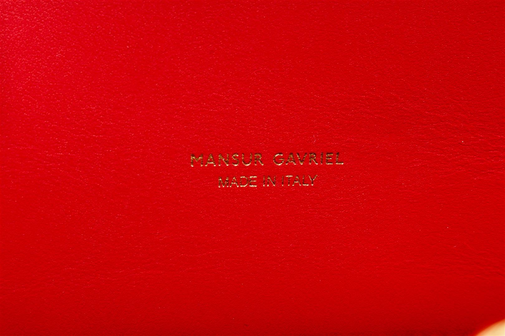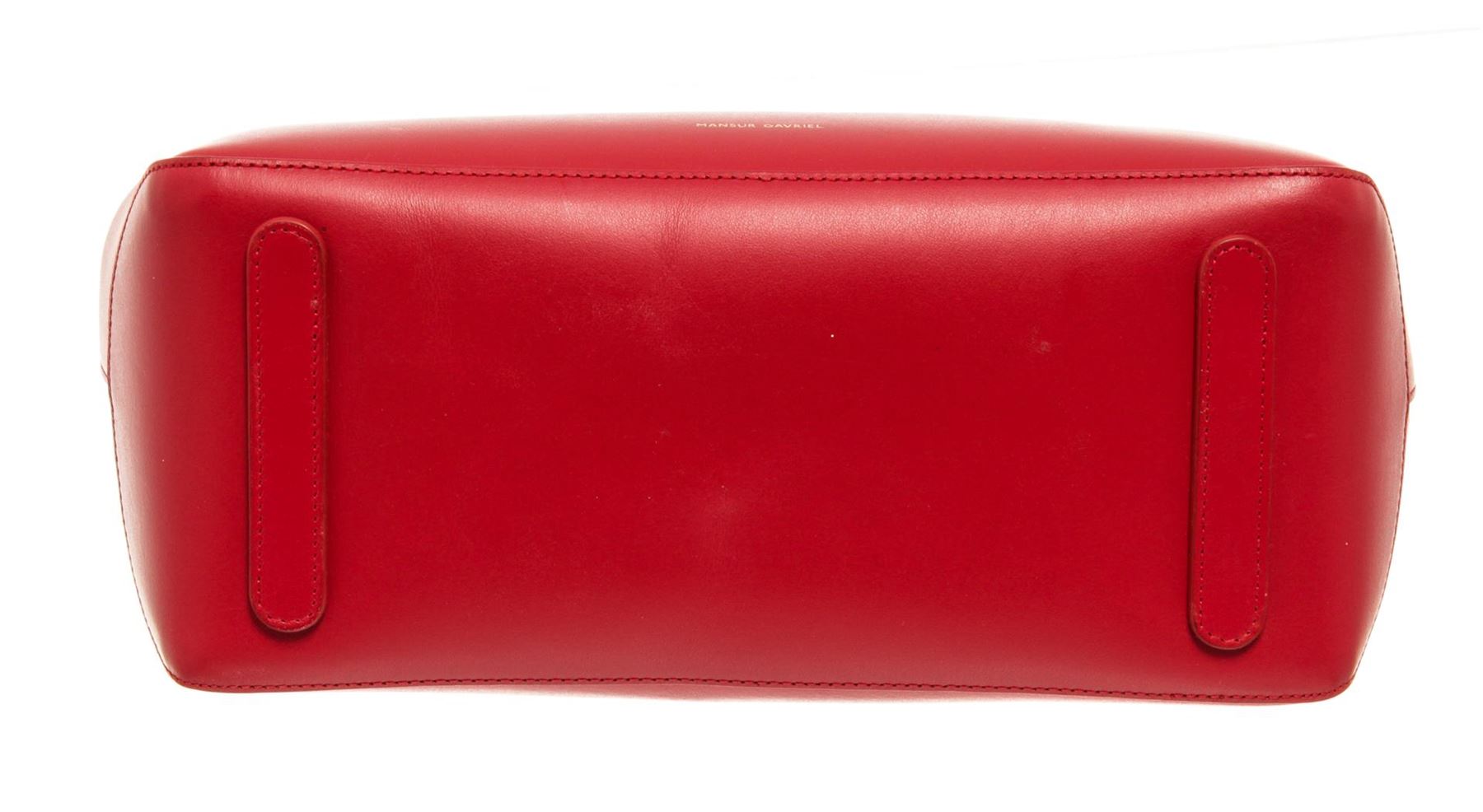 One Mansur Gavriel Red Leather Travel Handbag. Item is sold AS-IS. All available information is listed in the description and shown in the photo. Mansur Gavriel Red Leather Travel Handbag. Features gold hardware, red leather interior, red leather straps, and a gold zipper closure.