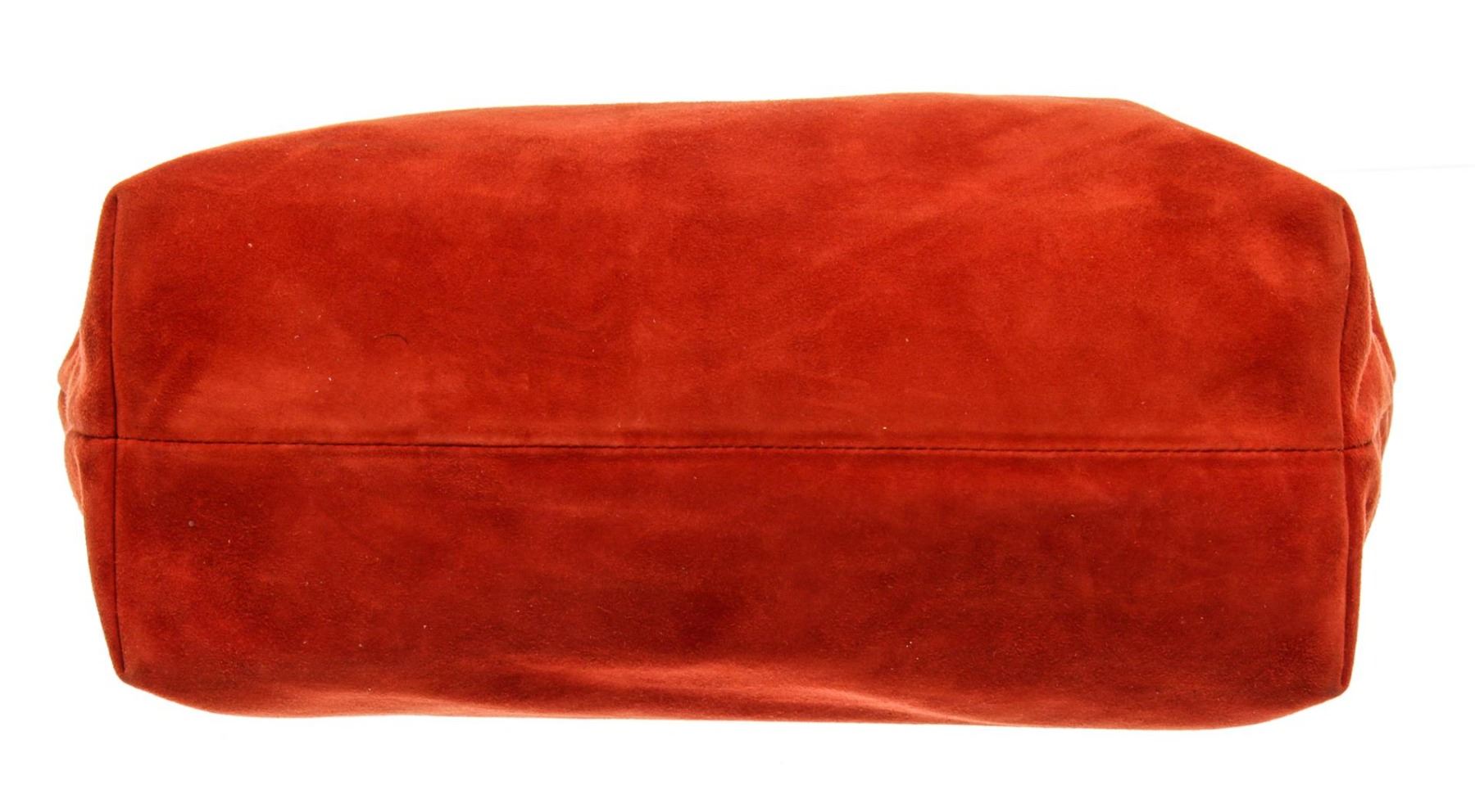 Mansur Gavriel Red Suede Soft Elegant Handbag. All available information is listed in the description and shown in the photos. Mansur Gavriel Red Suede Soft Elegant Handbag with gold-tone hardware, red suede lining, interior slip pocket, single leather top handle, and pushlock closure at the top. .