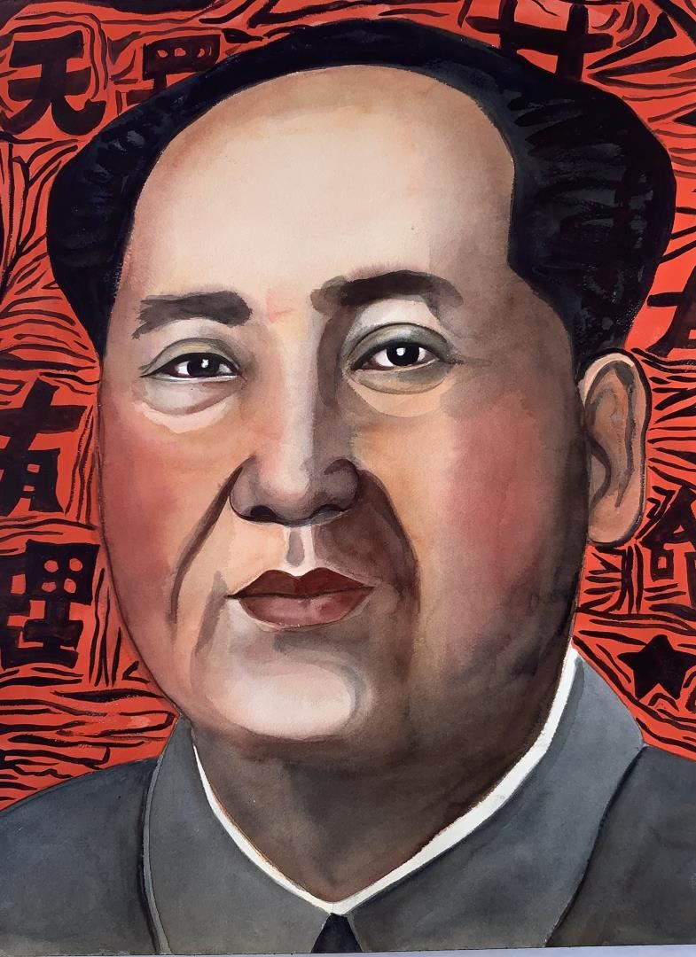 A pastel & watercolor portrait of the Chinese dictator Mao tse Tung 24x18" on deckled fine art paper, by Anonymous