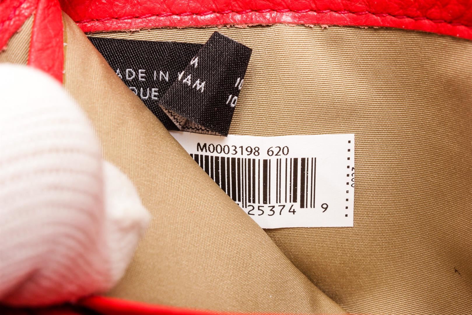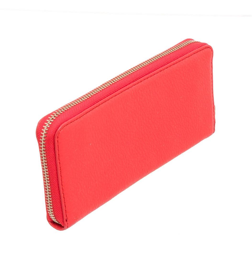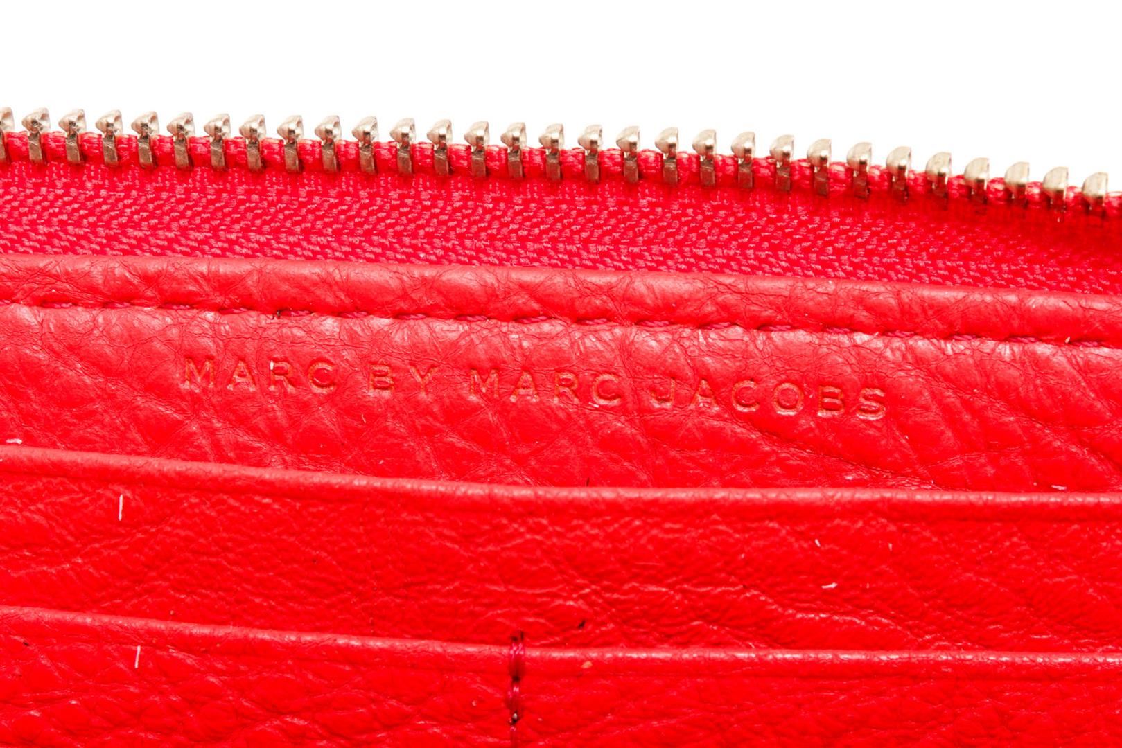 Marc By Marc Jacobs red leather zippy wallet with Silver-tone hardware, red leather interior lining, five interior pockets; one with zip closure, eight card slots and overall zip around closure.