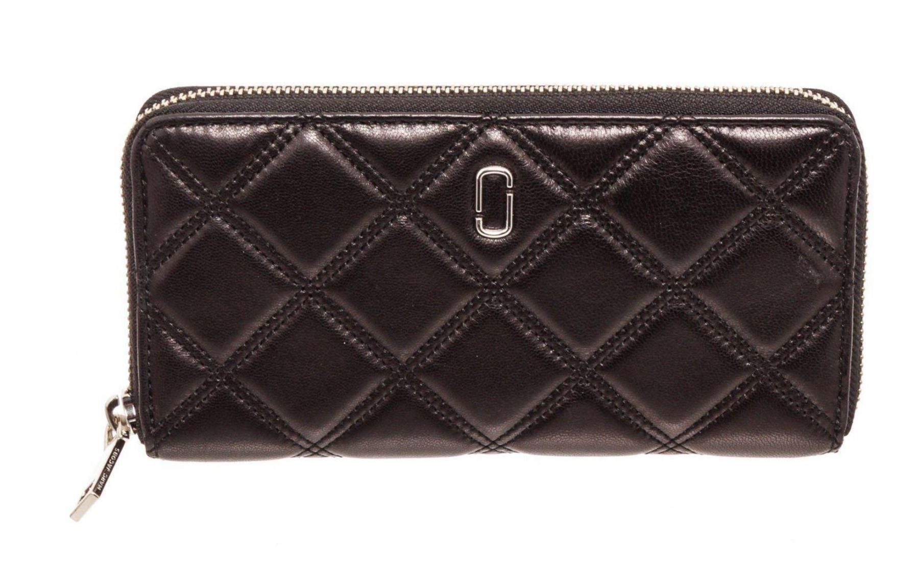 Marc Jacobs black quilted leather long zippy wallet with silver-tone hardware, J logo placard at front face, black leather interior lining, five interior compartments; one with zip closure, twelve card slots and overall zip around closure. Measurements: Length: 8 in / 20 cm Width: 0.9 in / 2 cm 4 in / 10 cmCONDITION: Pre-Owned Good overall, please see photographs for detail.
