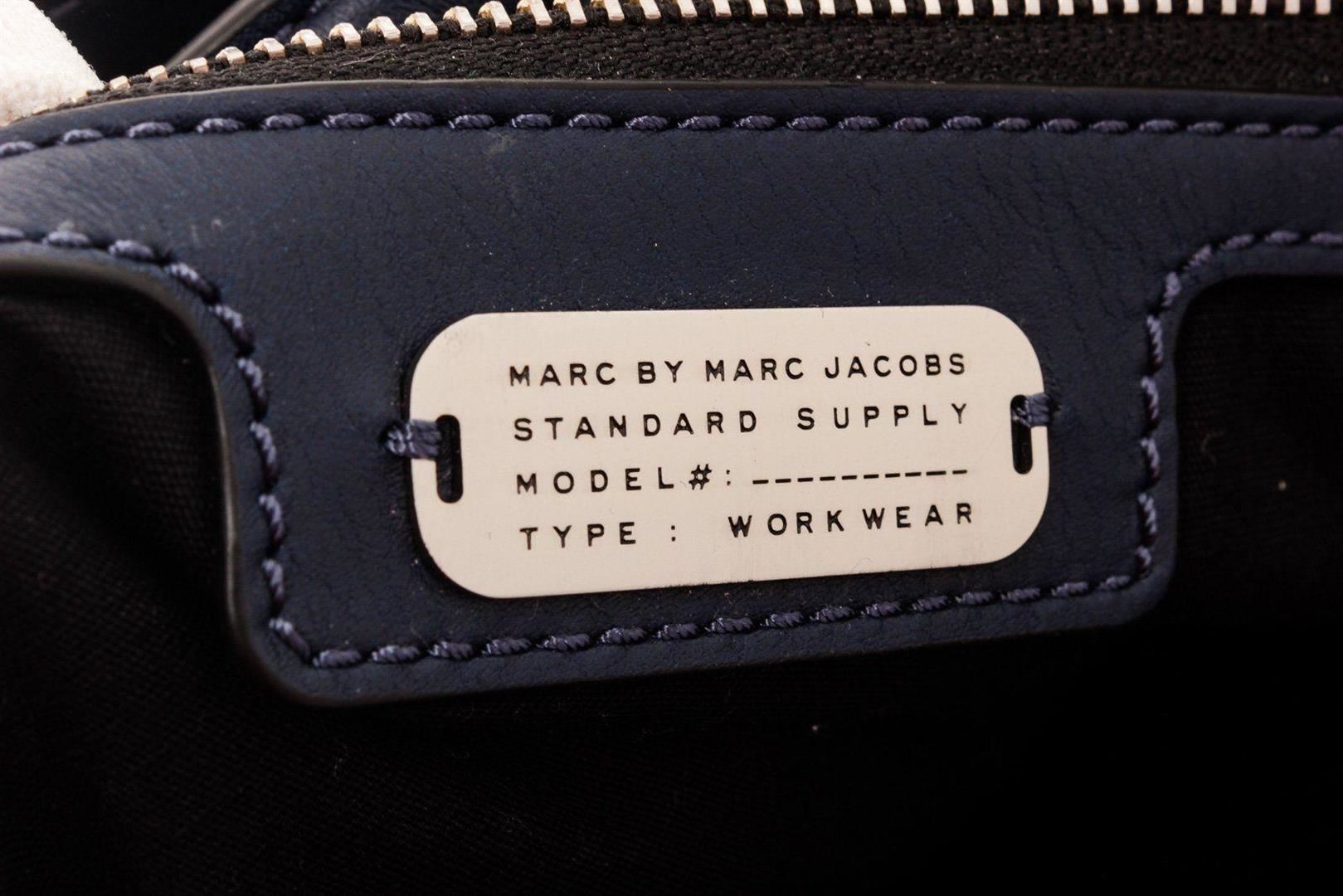 Marc Jacobs Navy Prism 34 Leather Shoulder Bag with gold-tone hardware, exterior flap pockets, interior zip pockets, leather lining, shoulder strap, and zip closure. Condition: Pre-Owned Good overall, please see photographs for detail.