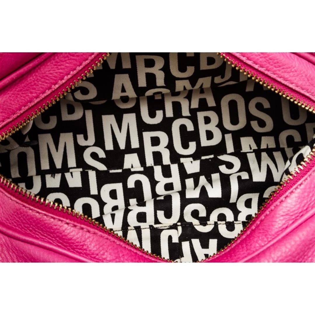 One Marc by Marc Jacobs Fuchsia Pink Leather Satchel Handbag. Contains overall zip top closure. Interior is fabric lined with two sideip pocket and one zipper pocket. Dual leather rolled handle and includes removable shoulder strap.