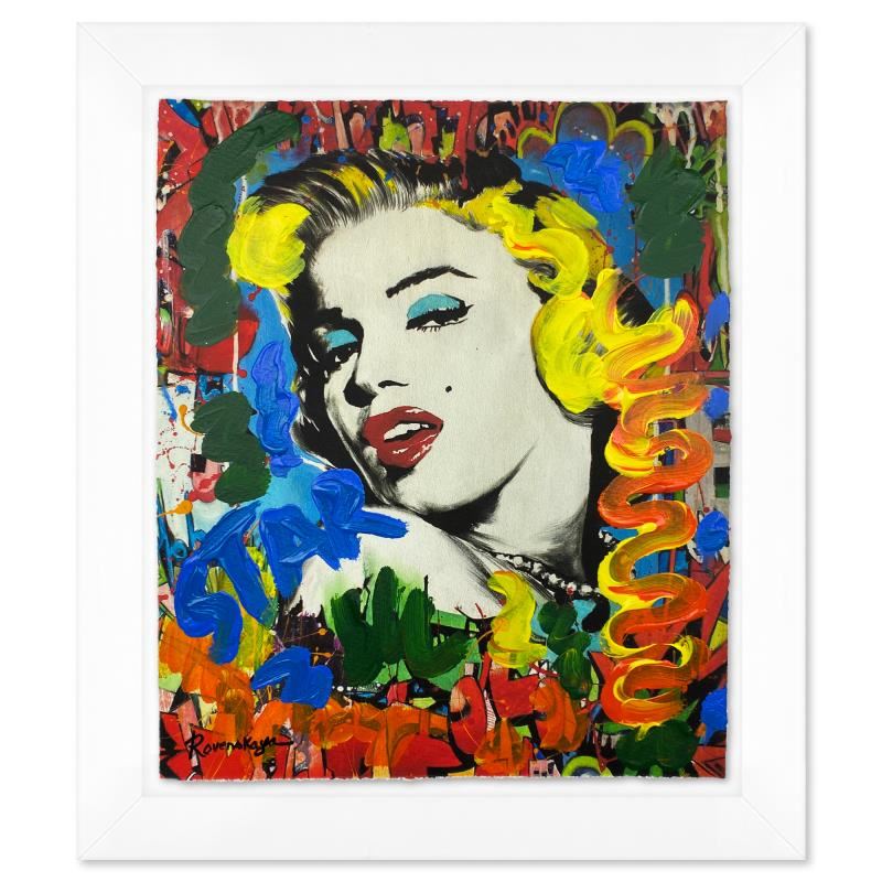 "Marilyn Monroe I" is a one-of-a-kind mixed media on deckle edge paper by Nastya Rovenskaya, Hand signed by the artist. This piece comes floating in a custom frame. Includes Letter of Authenticity. Measures approximately 14" x 12" (framed), 10" x 8" (image).