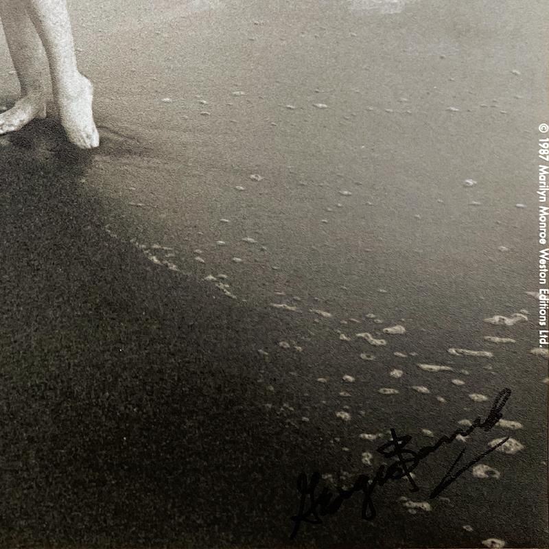Marilyn Monroe by George Barris (1922-2016). "Marilyn Monroe: The Last Shoot" is a photograph printed from the original negative taken by George Barris (1922-2016). This photo is part of a series entitled "The Last Photos"; they were taken in 1962 just two weeks before Monroe's death and are considered the last photos ever taken of the icon. This piece is numbered inverso and hand signed by the photographer. This photo bears the Edward Weston copyright stamp inverso and Includes Letter of Authenticity. Measures approx. 11" x 14" (image).