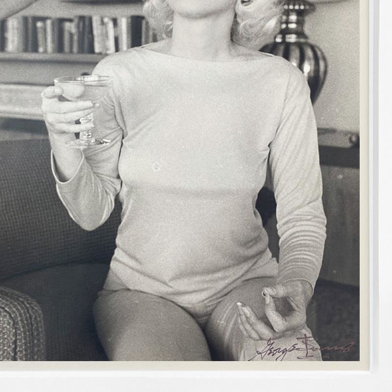 "Marilyn Monroe: The Last Shoot" is a photograph printed from the original negative taken by George Barris (1922-2016). This photo is part of a series entitled "The Last Photos"; they were taken in 1962 just two weeks before Monroe's death and are considered the last photos ever taken of the icon. This framed piece is numbered inverso and hand signed by the photographer. This photo bears the Edward Weston copyright stamp inverso and Includes Letter of Authenticity. Measures approx. 19" x 22" (frame), 10" x 13" (image).
