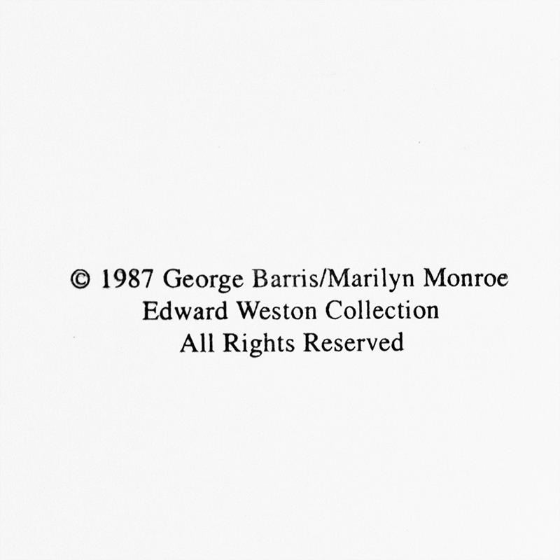 "Marilyn Monroe: The Last Shoot" is a photograph printed from the original negative taken by George Barris (1922-2016), hand signed by the photographer. This photo is part of a series entitled "The Last Photos"; they were taken in 1962 just two weeks before Monroe's death and are considered the last photos ever taken of the icon. This photo bears the Edward Weston copyright stamp inverso and Includes Letter of Authenticity. Measures approx. 14" x 11" (image). Due to the age of the piece the paper is slightly wavy.