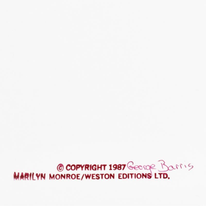 "Marilyn Monroe: The Last Shoot" is a photograph printed from the original negative taken by George Barris (1922-2016). This photo is part of a series entitled "The Last Photos"; they were taken in 1962 just two weeks before Monroe's death and are considered the last photos ever taken of the icon. This piece is numbered inverso 49/99 and hand signed by the photographer. This photo bears the Edward Weston copyright stamp inverso and Includes Letter of Authenticity. Measures approx. 10" x 8" (image).