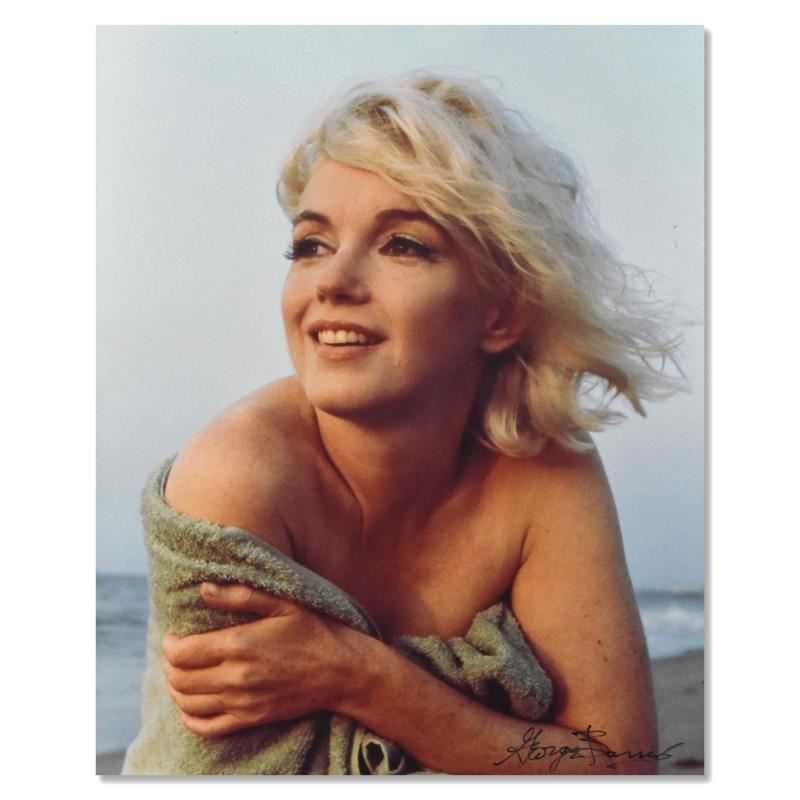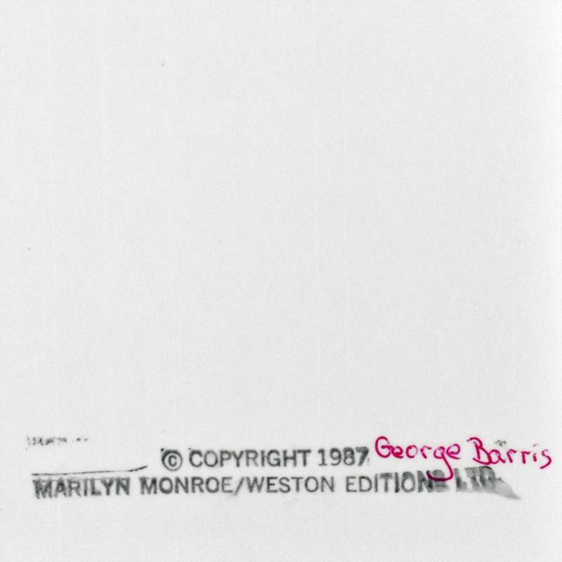 "Marilyn Monroe: The Last Shoot" is a photograph printed from the original negative taken by George Barris (1922-2016). This photo is part of a series entitled "The Last Photos" which were taken in 1962 just two weeks before Monroe's death and are considered the last photos ever taken of the icon. This piece is hand signed by the photographer and bears the Edward Weston copyright stamp inverso and includes Letter of Authenticity. Measures approx. 8" x 10" (image).
