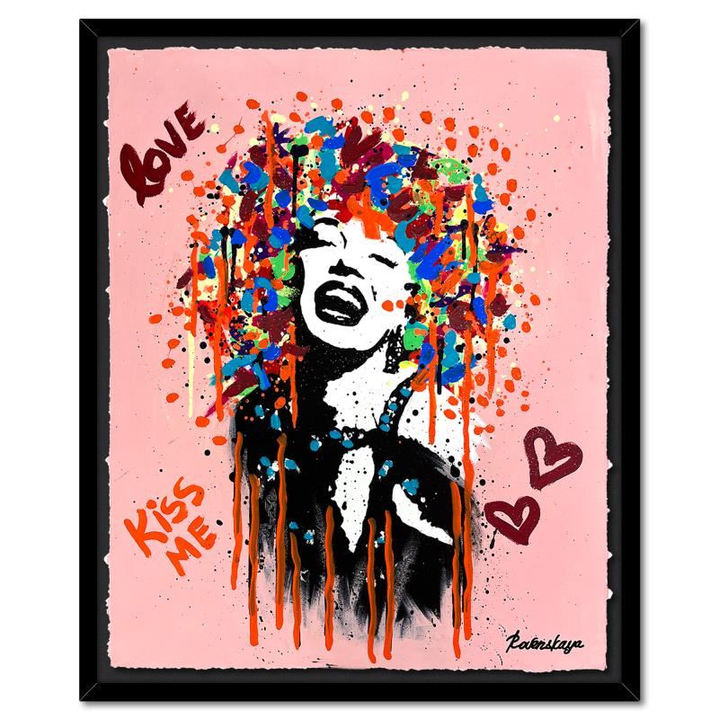 "Marilyn Monroe is Happy" is a one-of-a-kind mixed media on deckle edge paper by Nastya Rovenskaya; hand signed by the artist. This piece comes custom framed and includes letter of authenticity. Measures approximately 36" x 30" (framed), 30" x 24" (image). This item requires special handling and may have a longer than usual turnaround.