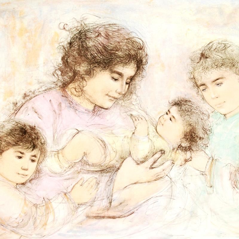 "Marilyn and Children" is a limited edition lithograph on paper, numbered and hand signed by Edna Hibel (1917-2014). Includes Certificate of Authenticity! Measures approx. 41.5" x 30" (with border), 37" x 27" (image).