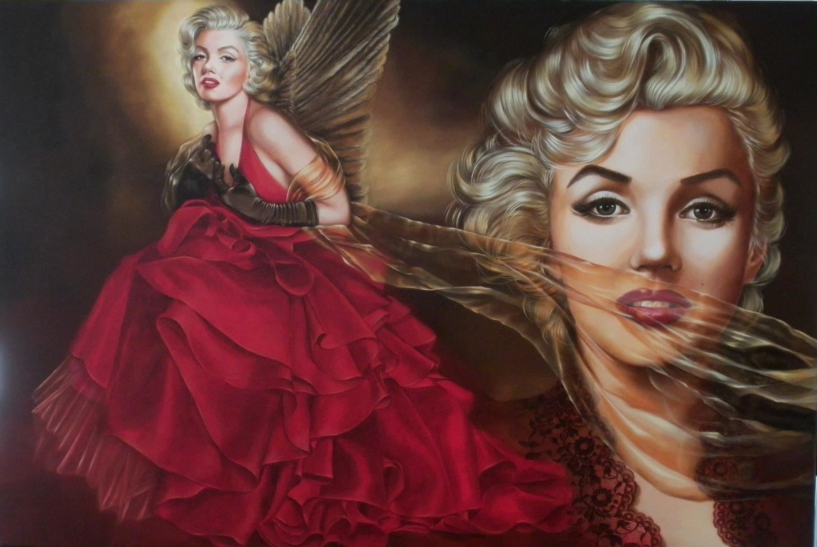 An original 60x40" oil painting of Marilyn Monroe by Margaret Korona on stretched canvas , with signature & COA by artist
