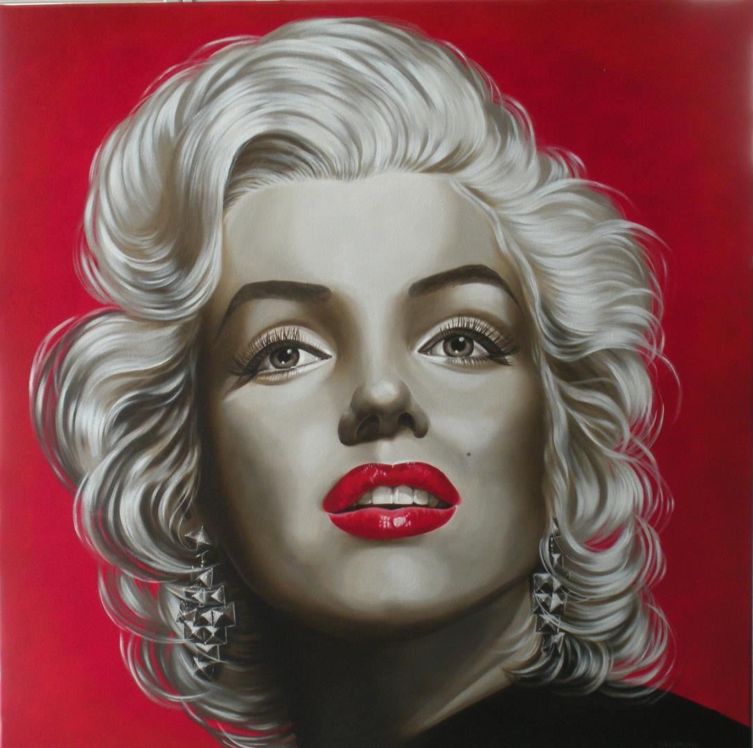 An original 36x36" oil painting of Marilyn Monroe by Margaret Korona on stretched canvas, signed by Artist ; with COA by Artist