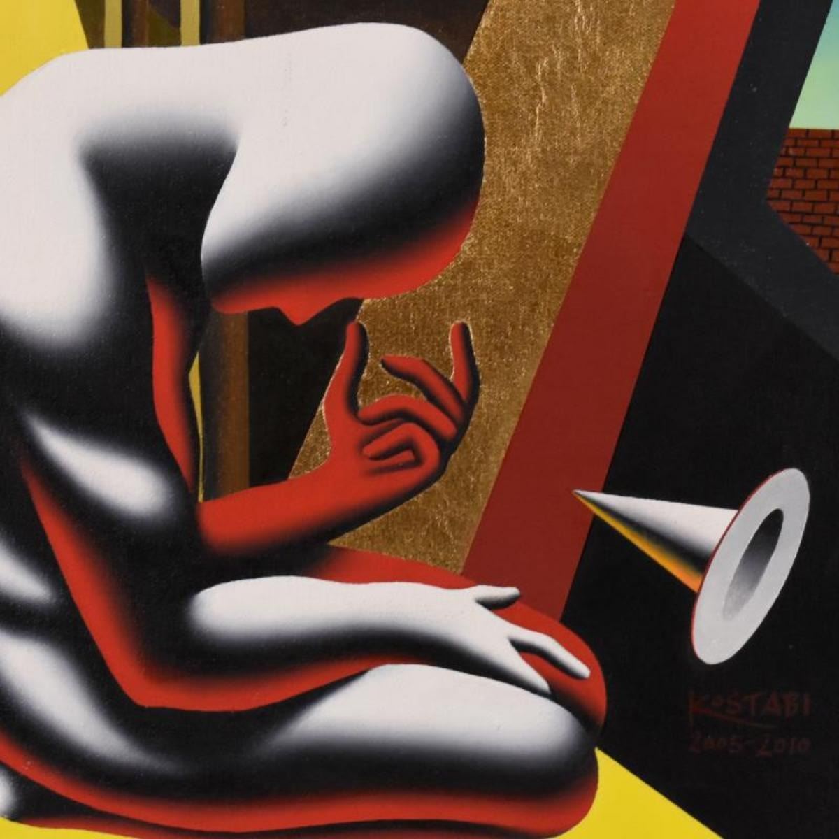 Mark Kostabi, "Gaining Perspective" Framed Original Oil Painting on Canvas, Hand Signed with Letter of Authenticity. Mark Kostabi, "Gaining Perspective" Framed Original Oil Painting on Canvas, Hand Signed with Letter of Authenticity.. "Gaining Perspective" is an original oil painting on canvas by Mark Kostabi, hand signed by the artist. This piece comes custom framed. Includes Letter of Authenticity. Measures approx. 24.5" x 32" (frame), 15.5" x 23.5" (image).