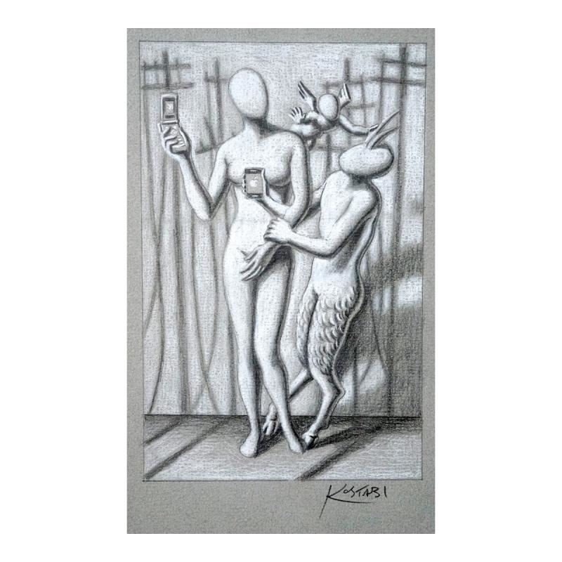 "The Mythology Of Communication" is an original artwork, pencil on paper, by Mark Kostabi. The piece is hand signed and comes with a certificate of authenticity. Measures approximately 12" x 7.5".