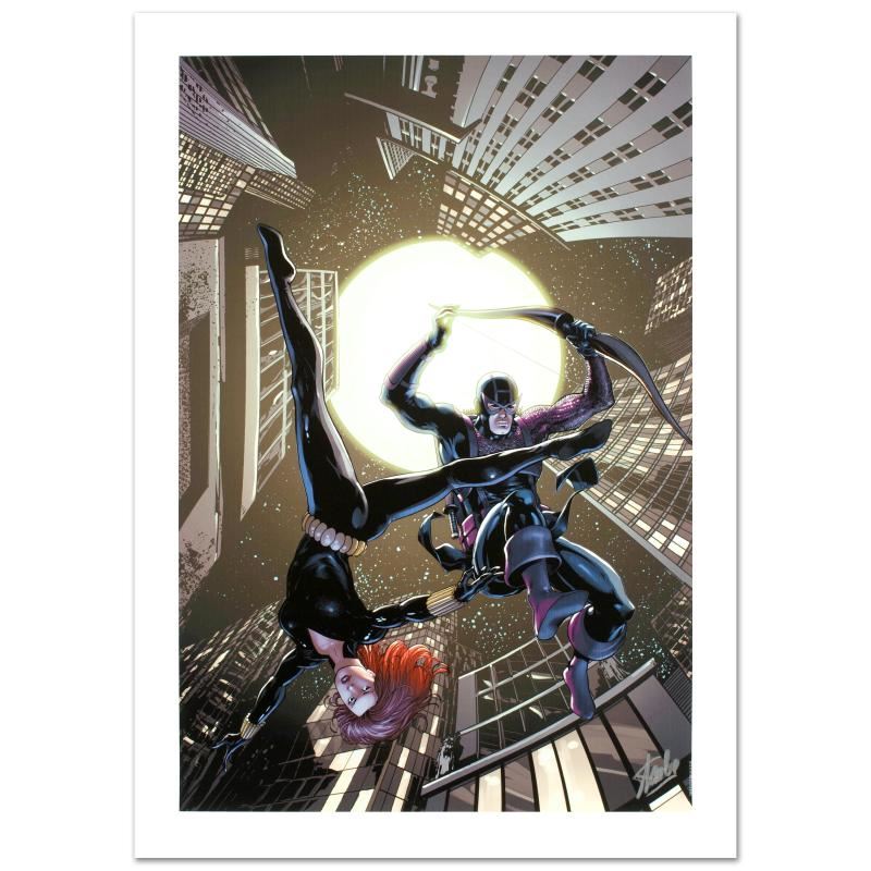 A piece of comic book history, this limited edition print, drawn by Barry Kitson, depicting the classic characters Black Widow and Hawkeye. Barry Kitson got his start at Marvel UK by penciling Spider-Man, and now works on the Fantastic Four, Hulk, and Iron Man series. "Marvel Adventure Super Heroes #17" is a limited edition giclee on canvas by Barry Kitson presented by Marvel Comics, numbered and hand signed by the great Stan Lee! Includes Certificate of Authenticity! Measures approx. 18" x 27" (image).