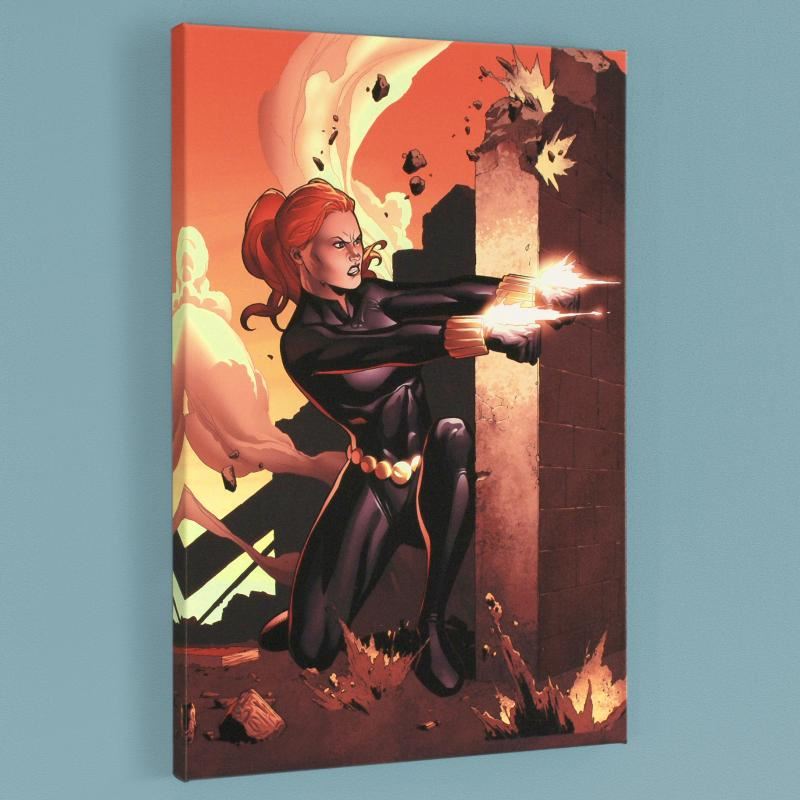 A piece of comic book history, this limited edition, from original art by Clayton Henry, depicts an epic image of the Black Widow. Artistic from an early age, Clayton Henry often uses comic books as his inspiration. After working on the independent comics Nine Rings Of Wu-Tang and Area 52, Marvel hired Henry to work on art for the X-Men franchise, among others. "Marvel Adventures: Super Heroes #10" is a limited edition numbered giclee on stretched canvas by Clayton Henry presented by Marvel Comics. This piece comes gallery wrapped. Includes Certificate of Authenticity! Measure approx. 18" x 27" (image); 1.5" (depth).