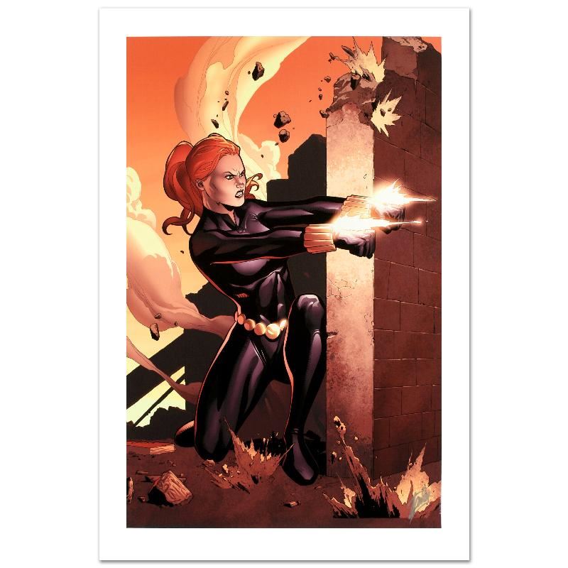 A piece of comic book history, this limited edition print, drawn by Clayton Henry, depicts an epic image of the Black Widow. Artistic from an early age, Clayton Henry often uses comic books as his inspiration. After working on the independent comics Nine Rings Of Wu-Tang and Area 52, Marvel hired Henry to work on art for the X-Men franchise, among others. "Marvel Adventures: Super Heroes #10" is a limited edition giclee on canvas by Clayton Henry presented by Marvel Comics, numbered and hand signed by the great Stan Lee! Includes Certificate of Authenticity! Measures approx. 18" x 27" (image).