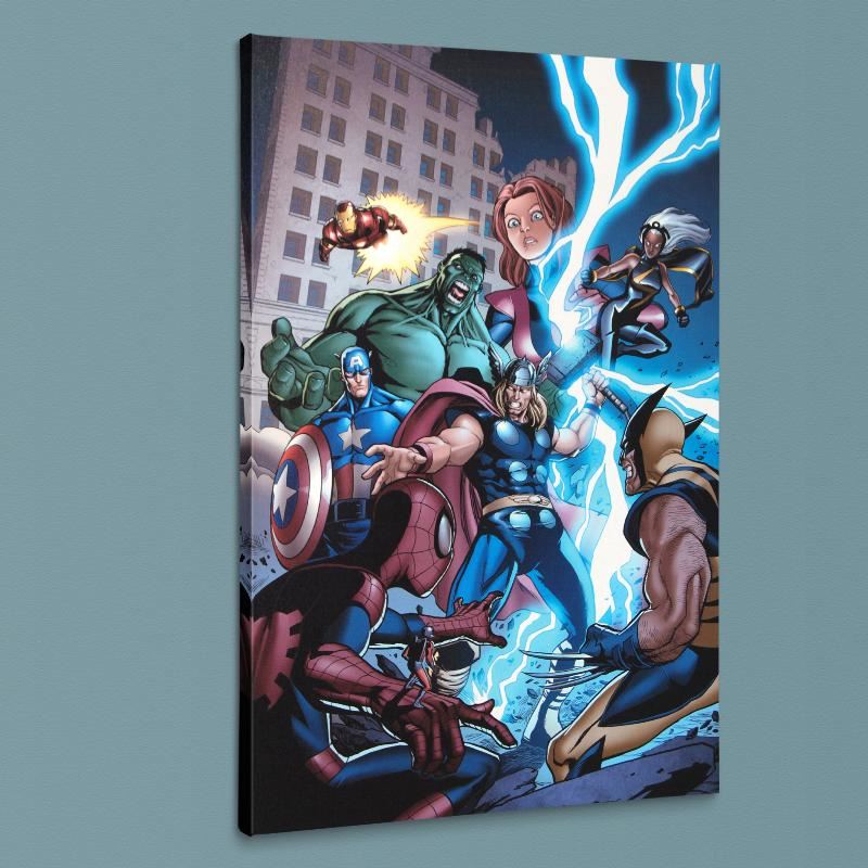 A piece of comic book history, this limited edition print, drawn by Salva Espin, depicts the heroic Avengers. Salva Espin has done work for such franchises as the Avengers, Deadpool, and Wolverine. "Marvel Adventures: The Avengers #31" is a limited edition numbered giclee on canvas by Salva Espin presented by Marvel Comics. This piece comes gllery wrapped and ready to hang. Includes Certificate of Authenticity! Measure approx. 18" x 27" (image)