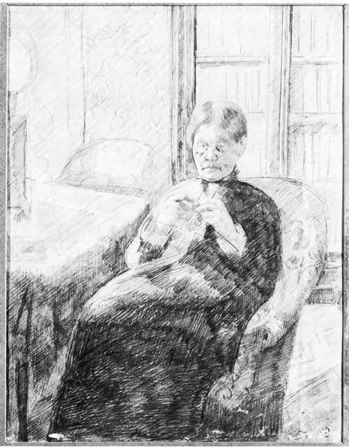 Artist: Mary Stevenson Cassatt (b. 1844 - 1926) Title: An Old Woman Knitting Medium: Fine Art Reproduction Giclee on Canvas Image Size: Approximately 32 inches x 25 inches Unframed on Unstretched Canvas Birography: Born on May 22, 1844, in Allegheny City, Pennsylvania, Mary Cassatt was one of the leading artists in the Impressionist movement of the later part of the 1800s. Moving to Paris, her home for the rest of her life, she was befriended by Edgar Degas. After 1910, her increasingly poor eyesight virtually put an end to her serious painting, and she died in 1926.