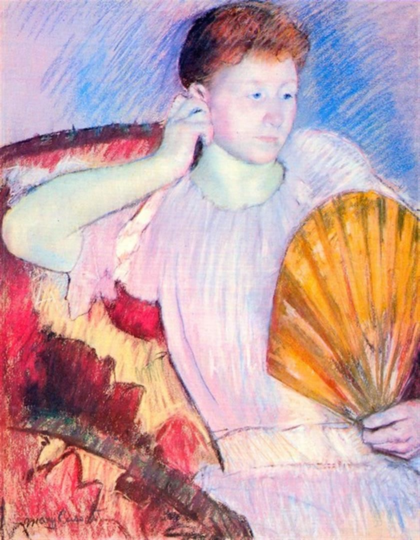 Artist: Mary Stevenson Cassatt (b. 1844 - 1926) Title: Lady With Fan Medium: Fine Art Reproduction Giclee on Canvas Image Size: Approximately 32 inches x 25 inches Unframed on Unstretched Canvas Birography: Born on May 22, 1844, in Allegheny City, Pennsylvania, Mary Cassatt was one of the leading artists in the Impressionist movement of the later part of the 1800s. Moving to Paris, her home for the rest of her life, she was befriended by Edgar Degas. After 1910, her increasingly poor eyesight virtually put an end to her serious painting, and she died in 1926.