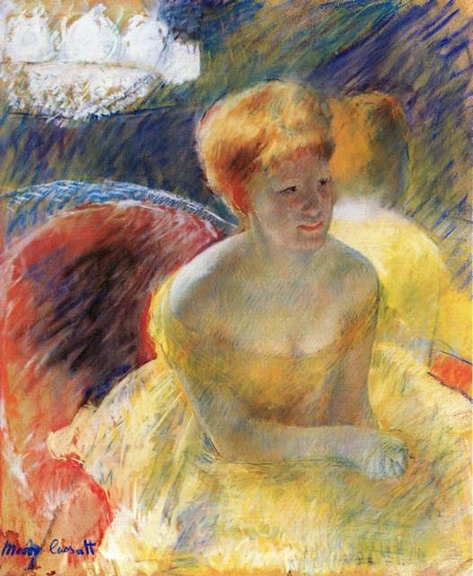 Artist: Mary Stevenson Cassatt (b. 1844 - 1926) Title: Lydia, The Arms Rested, In The Theater Loge Medium: Fine Art Reproduction Giclee on Canvas Image Size: Approximately 32 inches x 26.25 inches Unframed on Unstretched Canvas Birography: Born on May 22, 1844, in Allegheny City, Pennsylvania, Mary Cassatt was one of the leading artists in the Impressionist movement of the later part of the 1800s. Moving to Paris, her home for the rest of her life, she was befriended by Edgar Degas. After 1910, her increasingly poor eyesight virtually put an end to her serious painting, and she died in 1926.