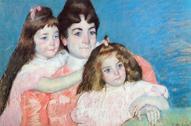 Artist: Mary Stevenson Cassatt (b. 1844 - 1926) Title: Madame A.F. Aude With Her Two Daughters Medium: Fine Art Reproduction Giclee on Canvas Image Size: Approximately 20 inches x 13.25 inches Unframed on Unstretched Canvas Birography: Born on May 22, 1844, in Allegheny City, Pennsylvania, Mary Cassatt was one of the leading artists in the Impressionist movement of the later part of the 1800s. Moving to Paris, her home for the rest of her life, she was befriended by Edgar Degas. After 1910, her increasingly poor eyesight virtually put an end to her serious painting, and she died in 1926.
