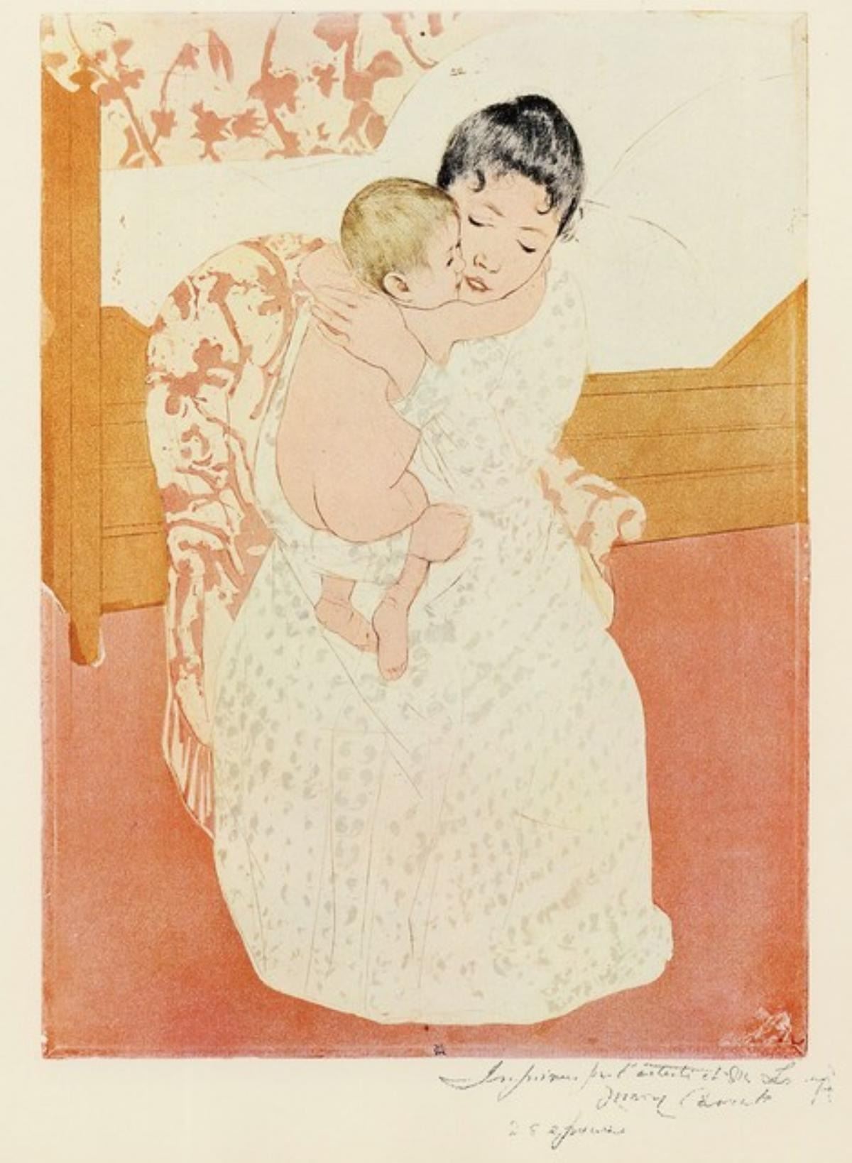 Artist: Mary Stevenson Cassatt (b. 1844 - 1926) Title: Motherly Tenderness Medium: Fine Art Reproduction Giclee on Canvas Image Size: Approximately 32 inches x 23.5 inches Unframed on Unstretched Canvas Birography: Born on May 22, 1844, in Allegheny City, Pennsylvania, Mary Cassatt was one of the leading artists in the Impressionist movement of the later part of the 1800s. Moving to Paris, her home for the rest of her life, she was befriended by Edgar Degas. After 1910, her increasingly poor eyesight virtually put an end to her serious painting, and she died in 1926.