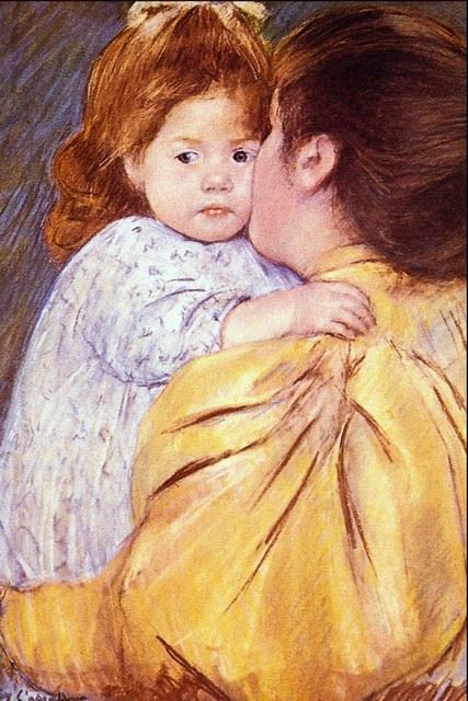 Artist: Mary Stevenson Cassatt (b. 1844 - 1926) Title: The Maternal Kiss Medium: Fine Art Reproduction Giclee on Canvas Image Size: Approximately 20 inches x 13.25 inches Unframed on Unstretched Canvas Birography: Born on May 22, 1844, in Allegheny City, Pennsylvania, Mary Cassatt was one of the leading artists in the Impressionist movement of the later part of the 1800s. Moving to Paris, her home for the rest of her life, she was befriended by Edgar Degas. After 1910, her increasingly poor eyesight virtually put an end to her serious painting, and she died in 1926.