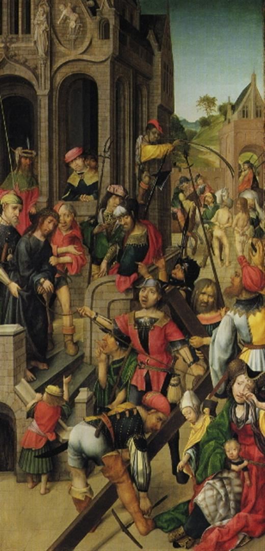 Artist: Master of Delft - Title:Passion of Christ - Medium: Fine Art Giclee on Canvas - Image Size: Approximately 32 inches x 15.5 inches - Unframed on Unstretched Canvas - Biography: The Master of Delft (c. 1490-1520) was a Dutch painter of the final period of Early Netherlandish painting, whose name is unknown. He may have been born around 1470. The notname was first used in 1913 by Max Jakob Friedländer, in describing the wings of a Triptych with the Virgin and Child with St Anne with the central panel by the Master of Frankfurt, which is now in Aachen. This has donor portraits of an identifiable family from Delft, that of the Burgomaster of Delft, Dirck Dircksz van Beest Heemskerck (1463-1545), with his wife and children.