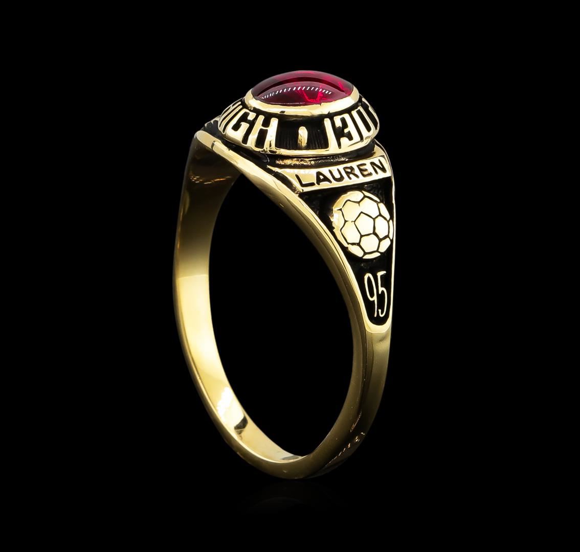 One Mater Dei High School ring featuring: 10KT yellow gold weighing approximately 4.17 grams containing one ruby.