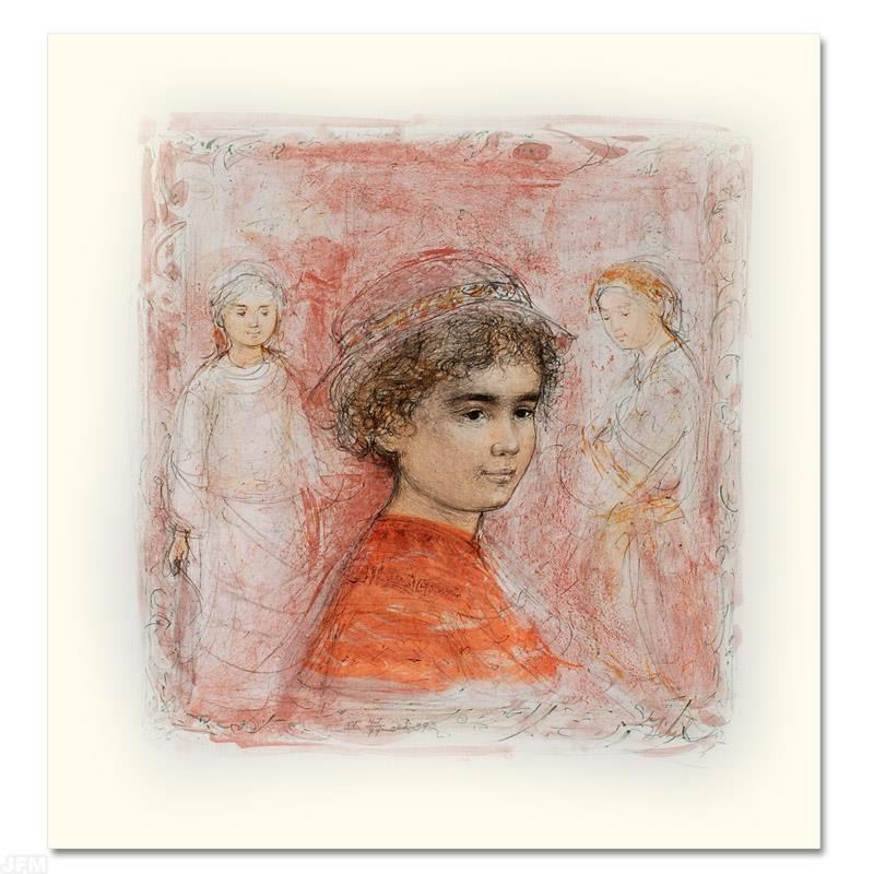 "Matthew" is a limited edition lithograph on paper, numbered and hand signed by Edna Hibel (1917-2014). Includes Certificate of Authenticity! Measures approx. 19.5" x 25.5" (with border), 15" x 16" (image).