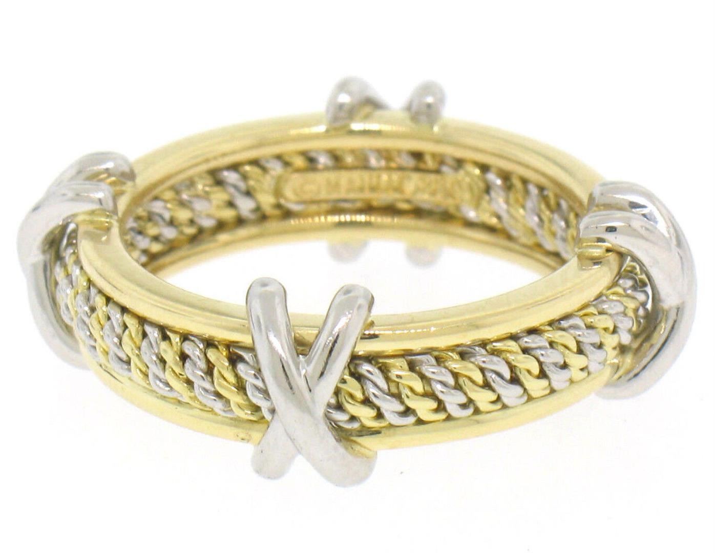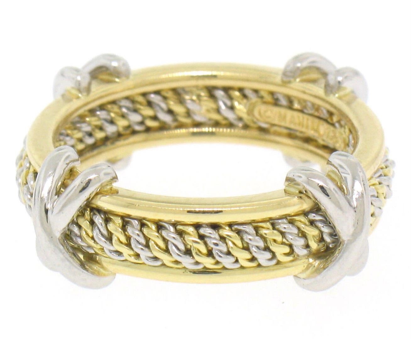 An estate solid platinum with 18k yellow gold band ring by Mavito.The ring is size 5.5, weighs a total of 9.0 grams, and measures 7.25mm wide.