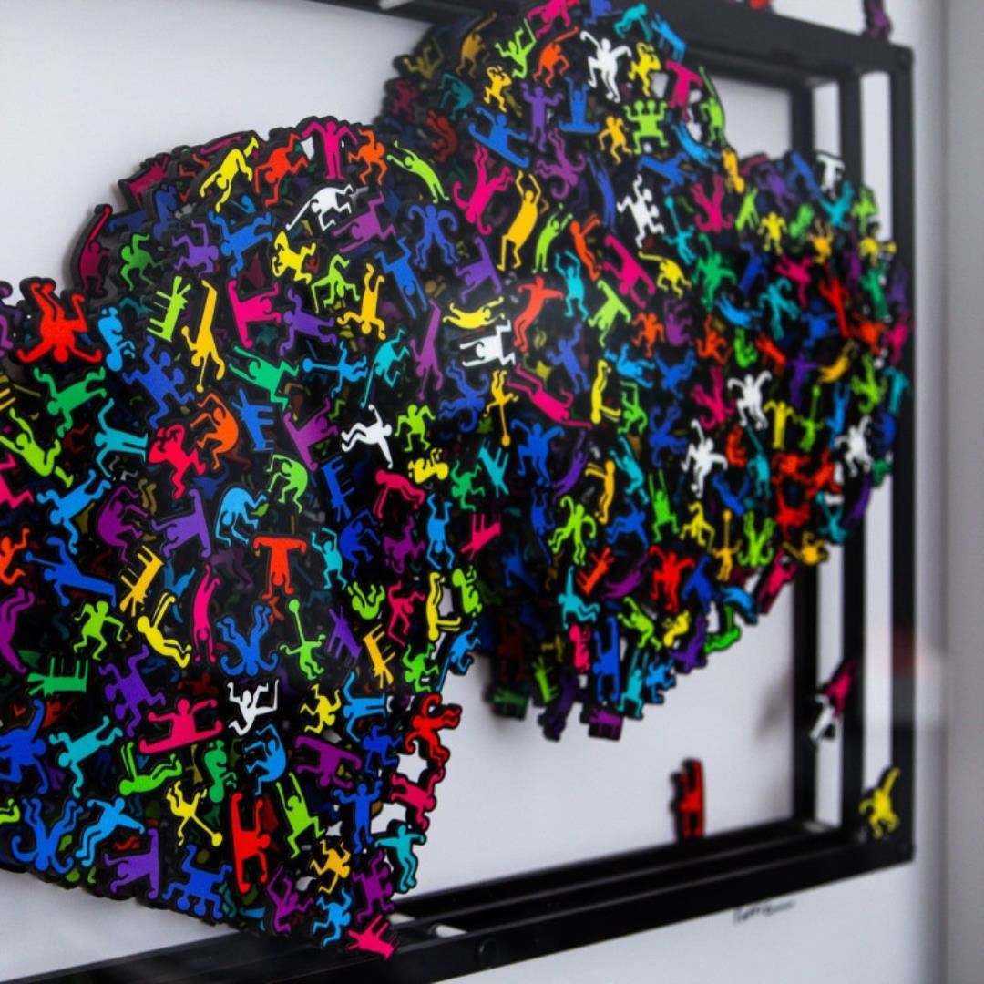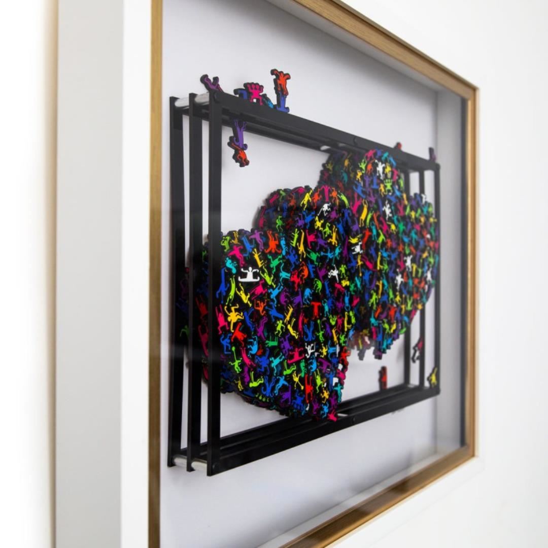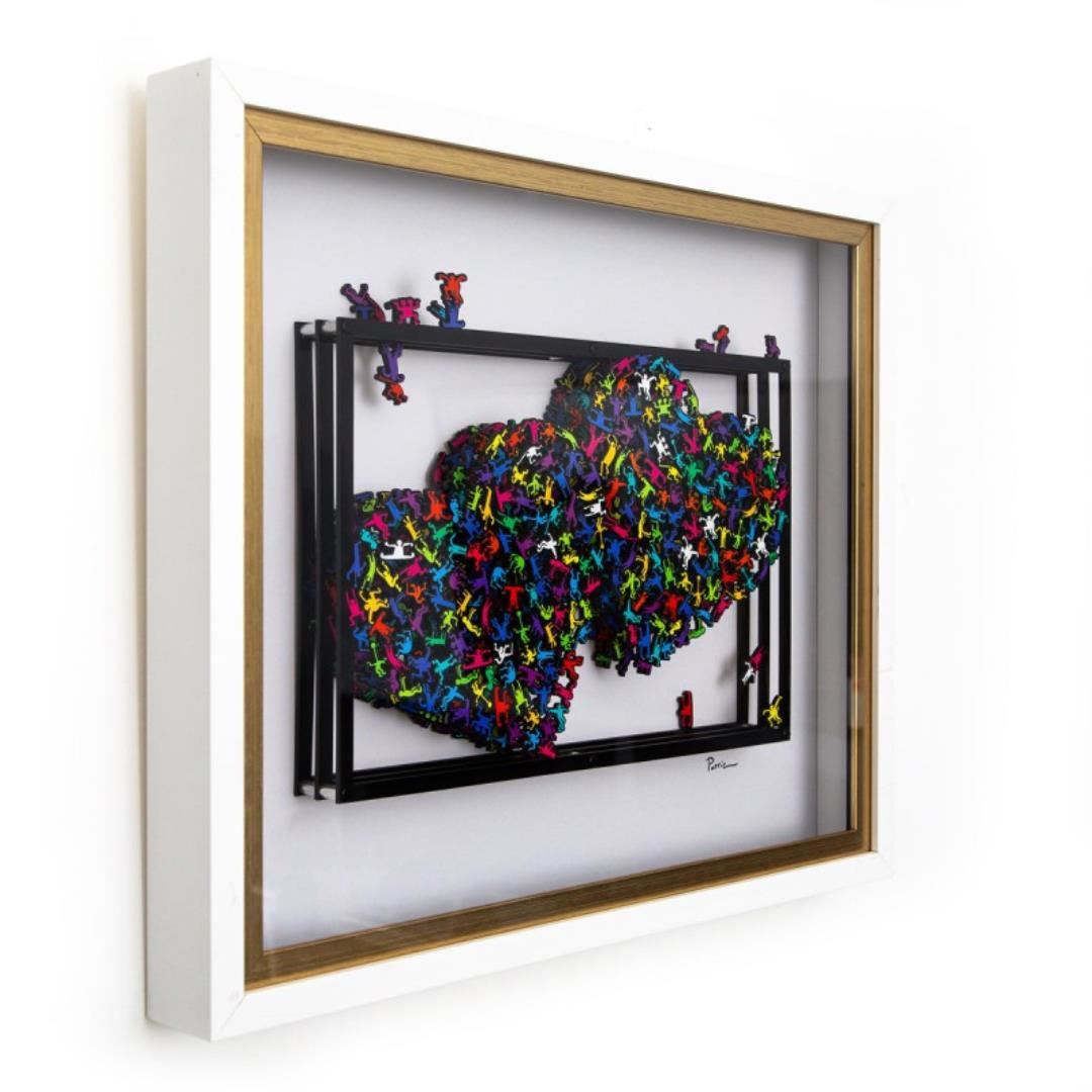 "Me & You" is a limited edition 3D multilayered woodcut by Patricia Govezensky. Hand signed and numbered out You only 25 pieces, this pece comes framed and with a letter of authenticity. Measures approximately 20" x 24" (framed), 12" x 15.5" (piece).