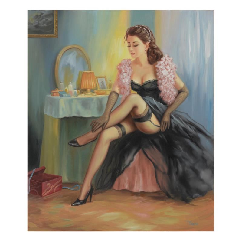 "Melissa" is an original painting oil on canvas by Taras Sidan. The piece is hand signed by the artist and comes with a letter of authenticity. Measures approximately 24" x 20". This item requires special handling and may have a longer than usual turnaround.