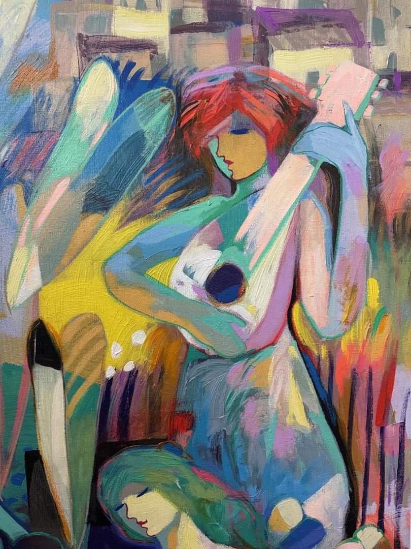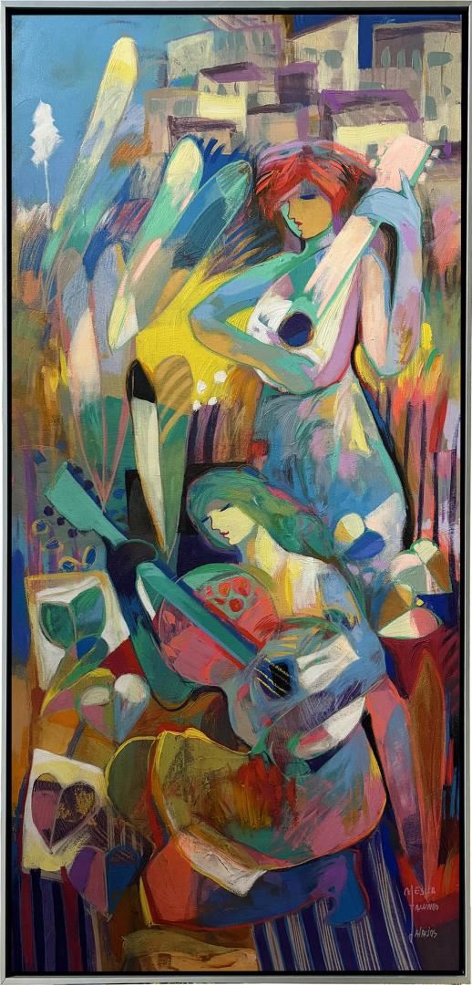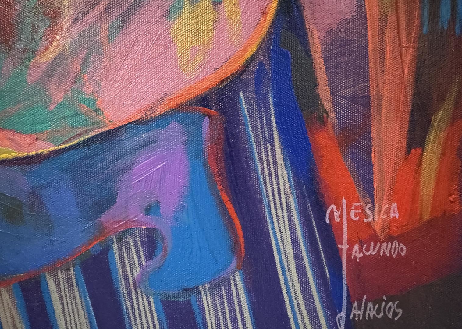 Fantastic original acrylic on 28X60" canvas. Hand signed by pALACIOS. This artwork comes framed and ready to hang
