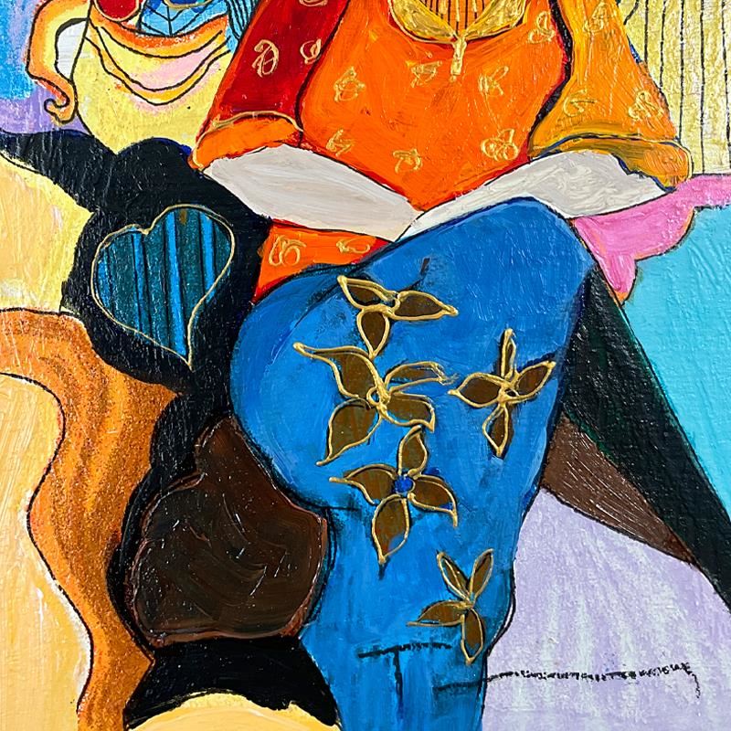 "Memorie" is a one-of-a-kind mixed media over paint on wood by Itzchak Tarkay (1935-2012), hand signed by the artist. This piece comes custom framed. Includes Letter of Authenticity. Measures approx. 19.5" x 16.5" (frame), 11.5" x 8.5" (image).