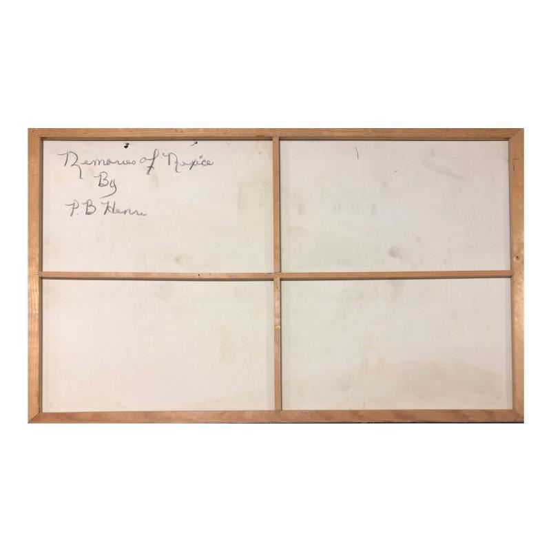 "Memories of Mexico" is an original oil painting on stretched canvas by Paul Blaine Henrie (1932-1999). The piece is hand signed by the artist and comes with a letter of authenticity. Please note that due to the age of this piece and the way it was stored, there are minor sings of wear, particularly on the corners and edges. Measures approximately. 40" x 60" (image).