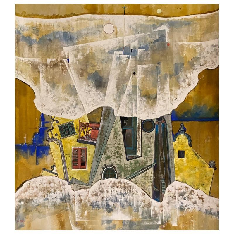"Memory of Poland (1991)" is an original mixed media painting on paper by Lu Hong. Hand signed by the artist, the piece comes with a letter of authenticity. Measures approximately 35" x 34.5".
