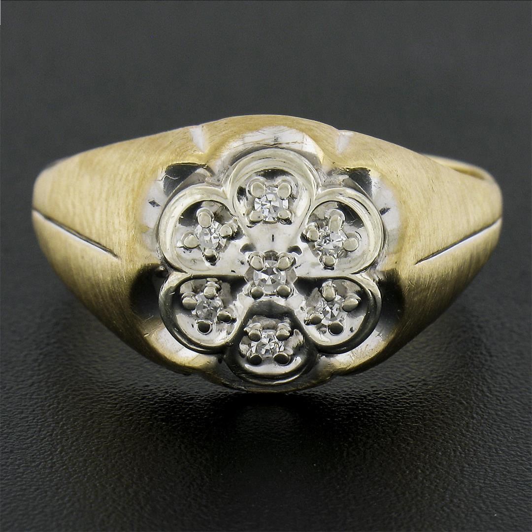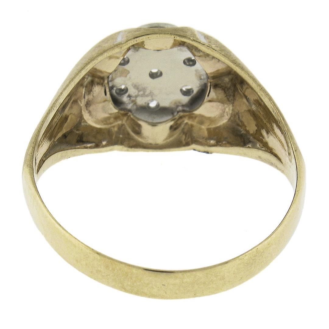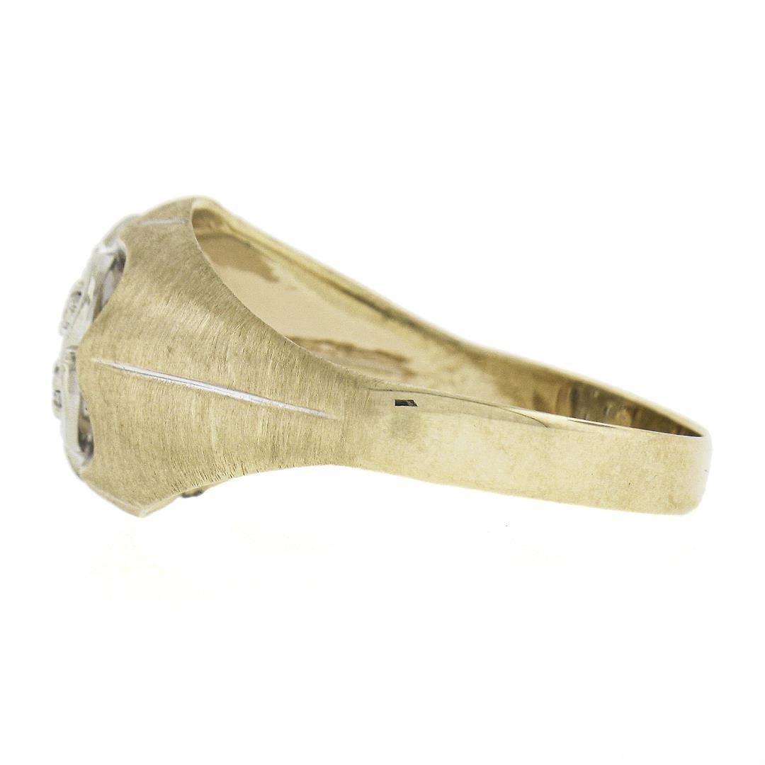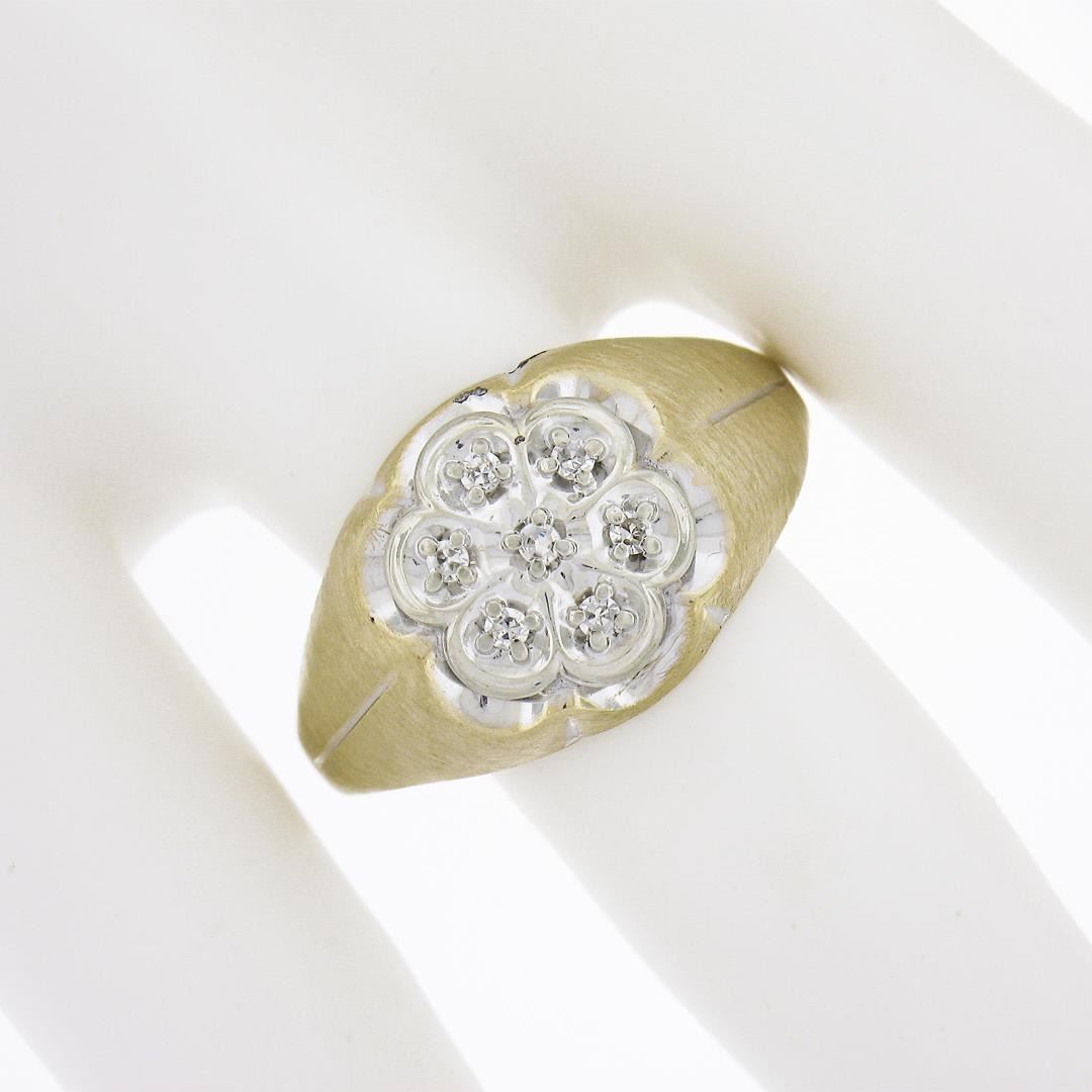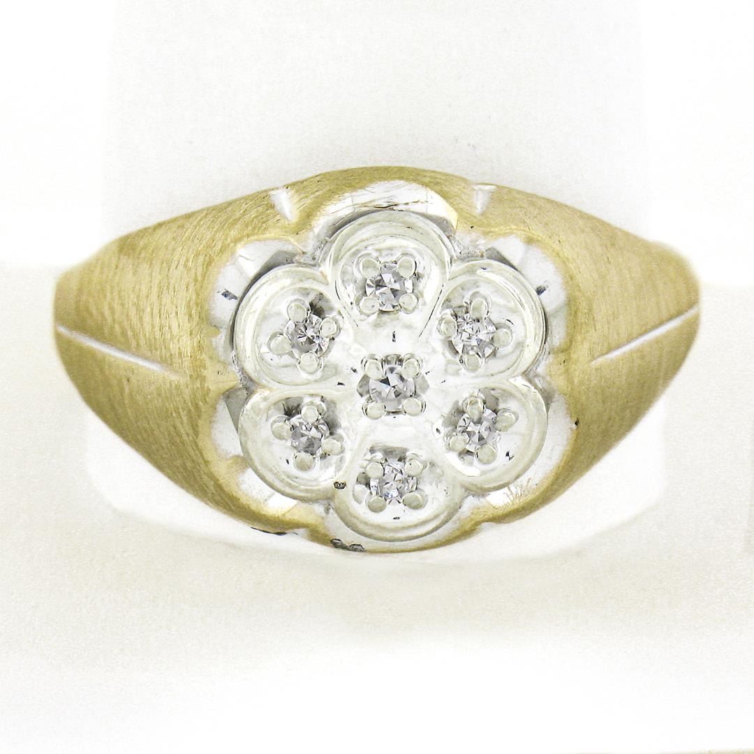 Men's 10K Two Tone Gold 0.10 ctw Single Prong Diamond Matte Finish Cluster Ring