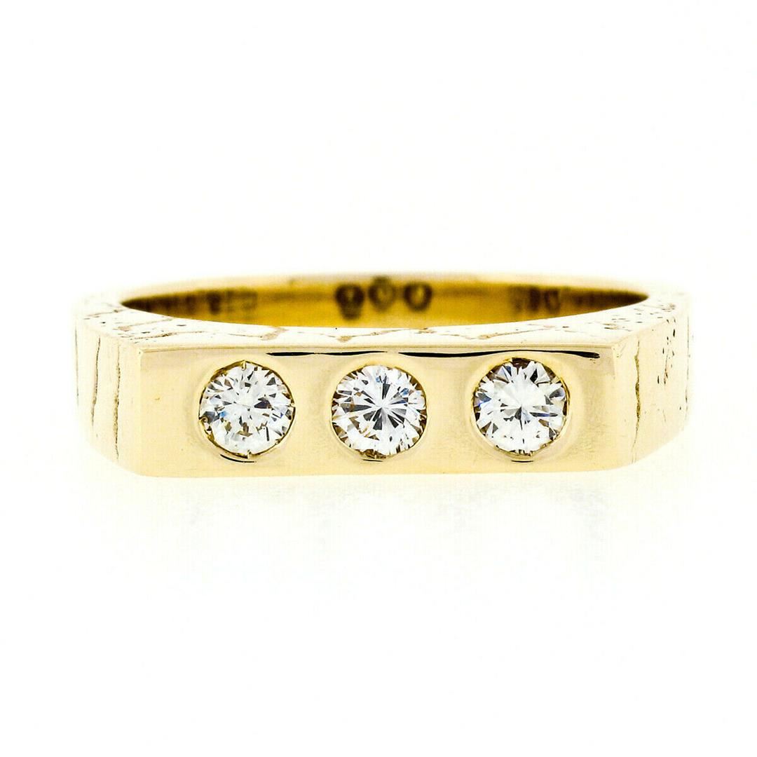 A solid 14k yellow gold nugget high profile band ring, with 3 round brilliant cut natural diamonds (H/I - VS1/VS2; 0.36ctw). The ring is size 8.5, weighs a total of 8.48 grams, and measures 4.50mm wide.