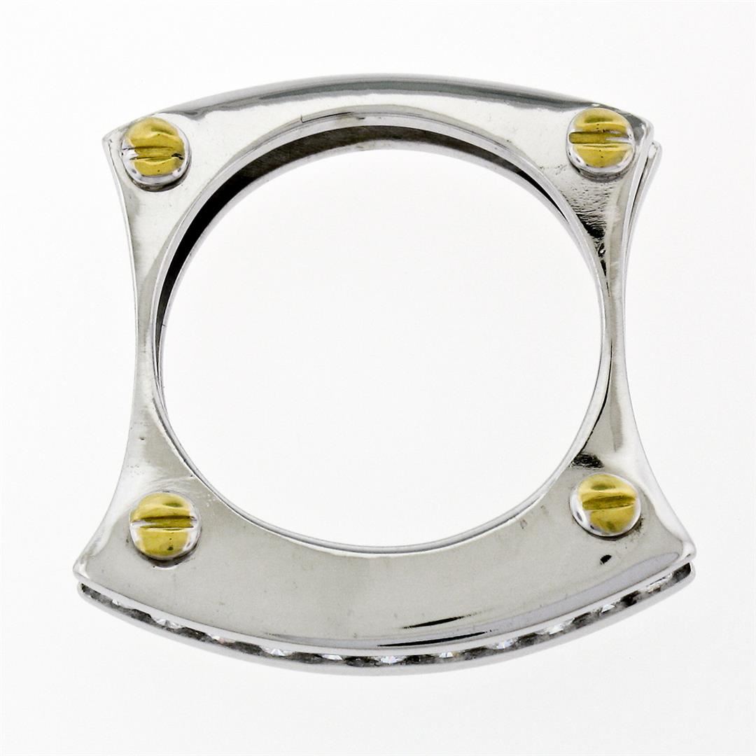 Men's 14K TT Gold 0.60ctw Channel Round Diamond Open Squared Layered Band Ring. Please see photos and description for all available information. A new solid 14k yellow and white gold squared layered band ring, featuring 11 round brilliant cut natural diamonds (F/G - VS1/VS2; 0.60ctw). The ring is size 10.0, weighs a total of 10.60 grams, and measures 4.90mm wide.