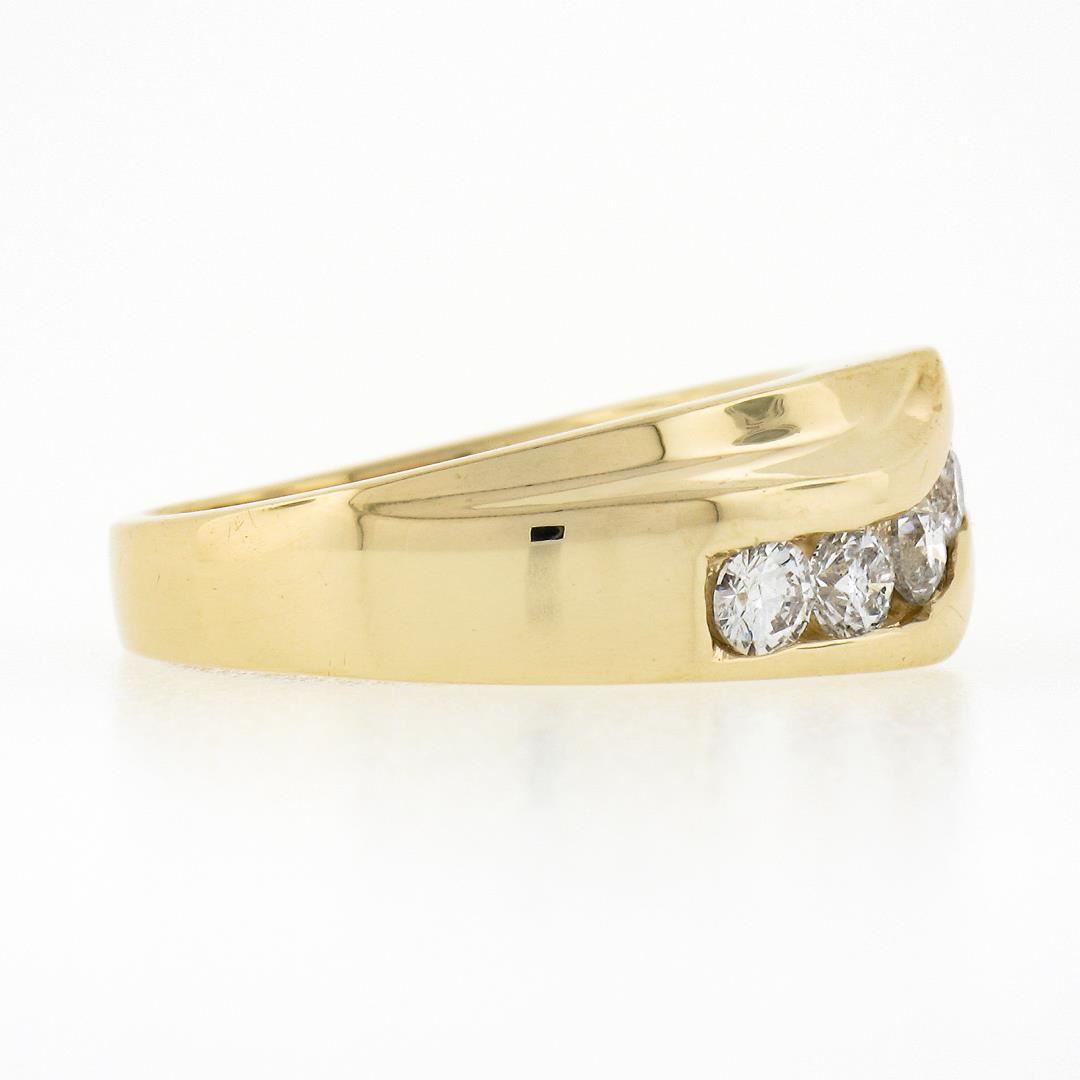 A solid 14k yellow gold men's band ring with 7 round brilliant cut natural diamonds (F/G- VS1/VS2 ; 1.10ctw). The ring is size 10.5, weighs a total of 8.98 grams, and measures 9mm wide.