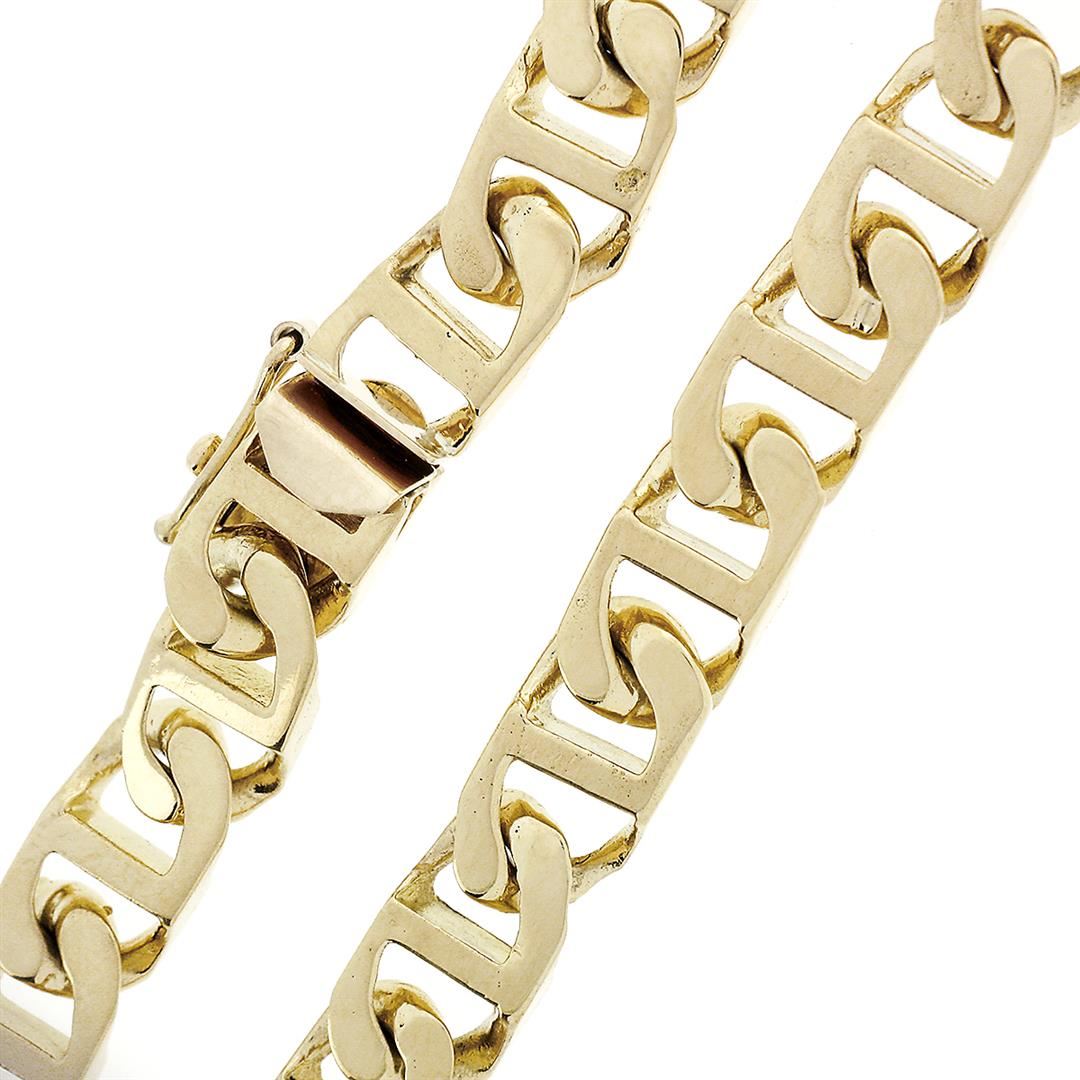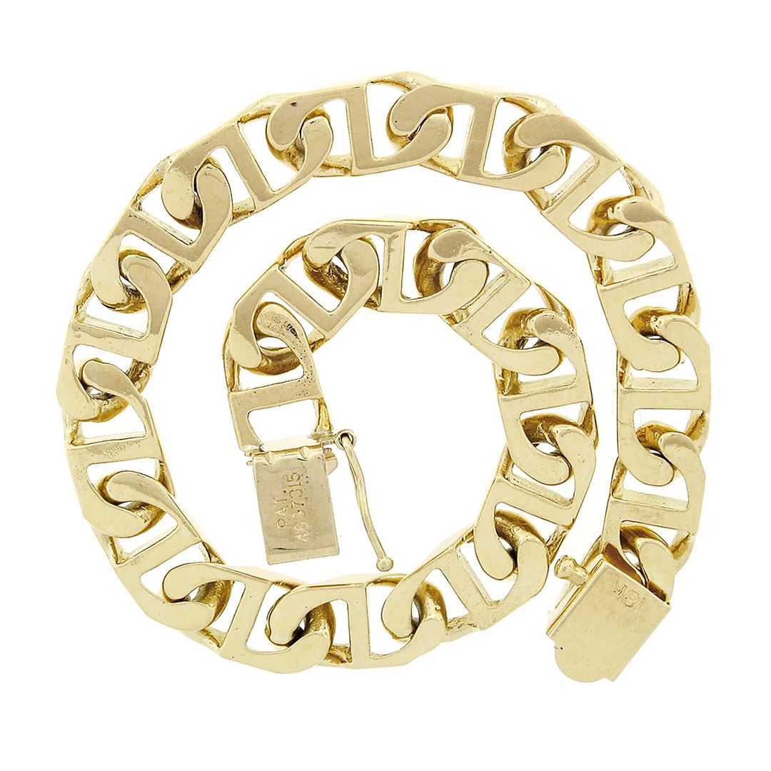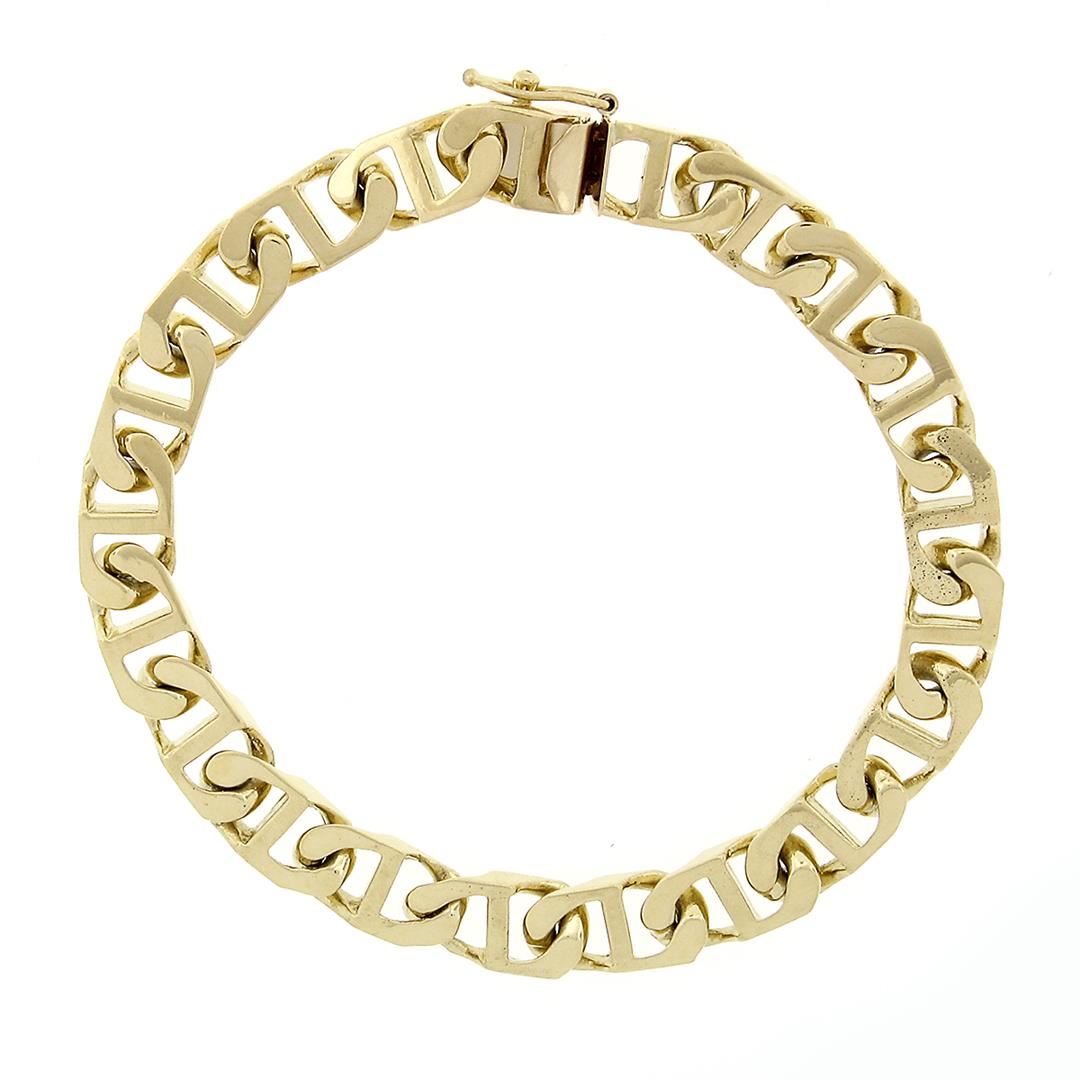 A solid 18k yellow gold Gucci Mariner link chain bracelet. It weighs a total of 28.21 grams, measures 7.1mm wide, and measures 7 inches in length.
