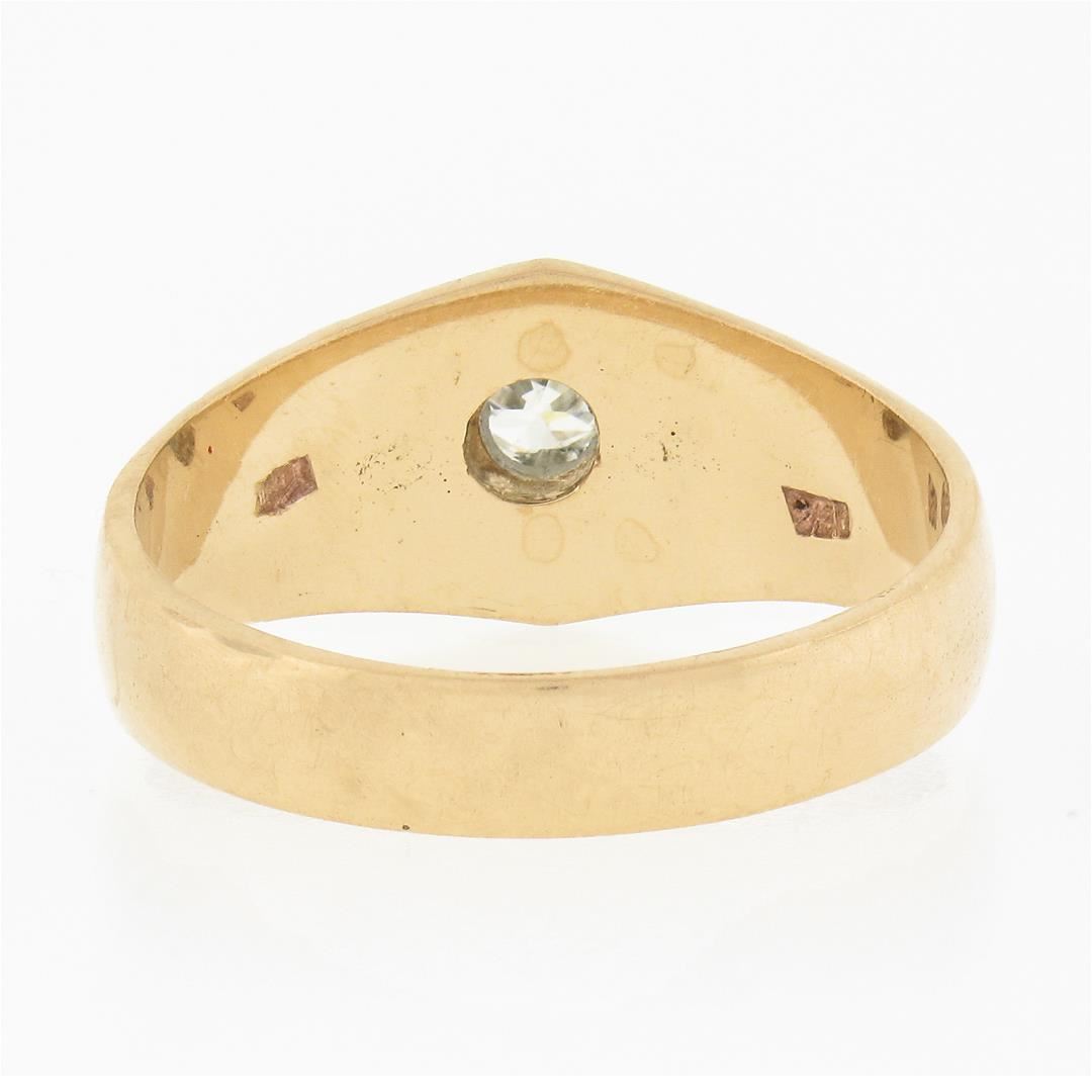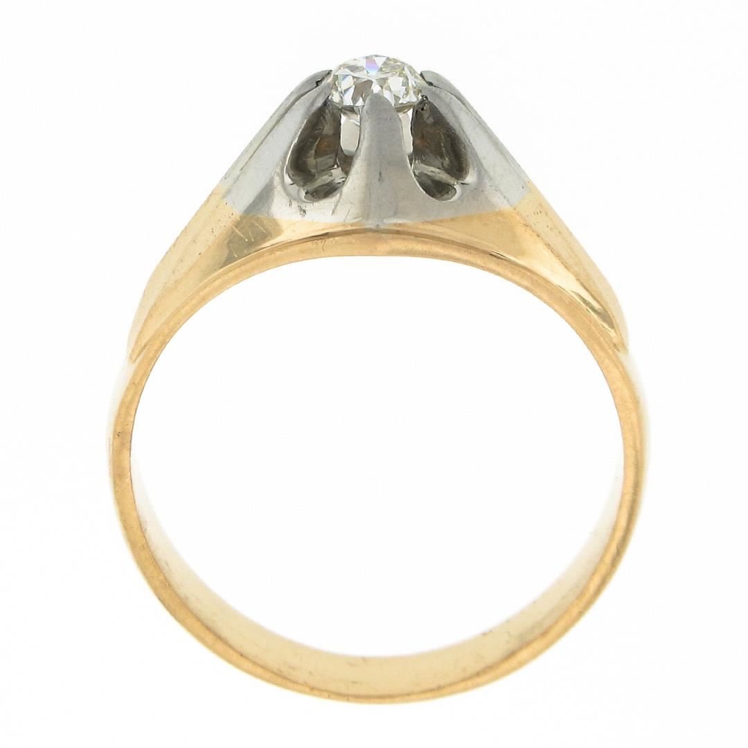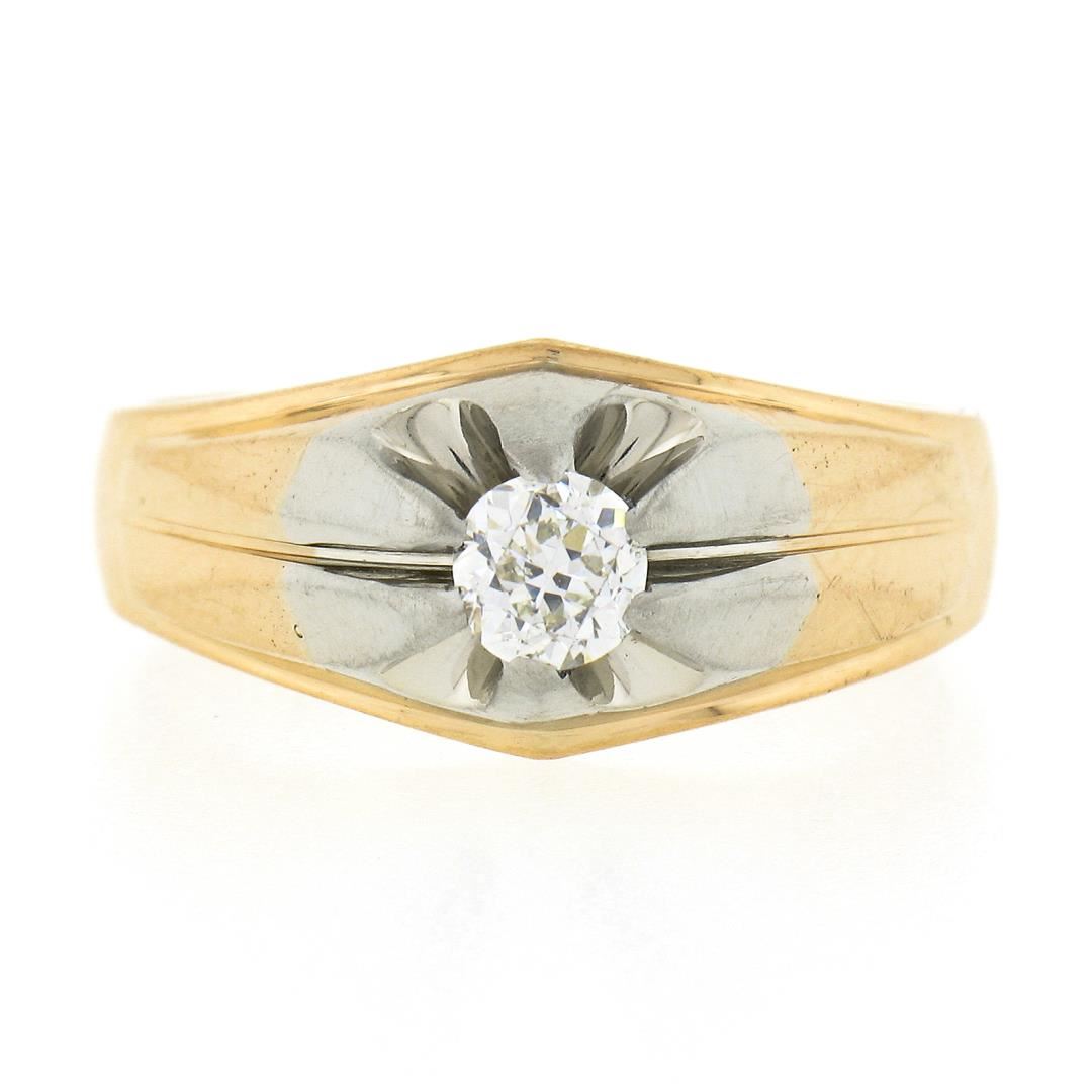 An antique solid 18k yellow & white gold belcher band ring, with 1 old european cut natrual diamond (I - VS2 ; 0.42ct). The ring is size 10.5, weighs a total of 9.15 grams, and measures 10.1mm wide.