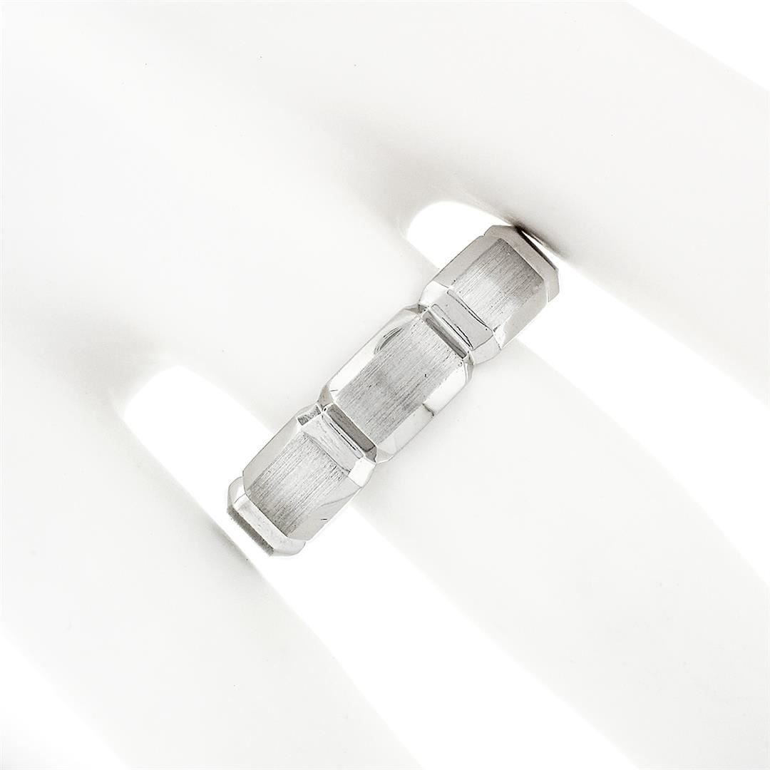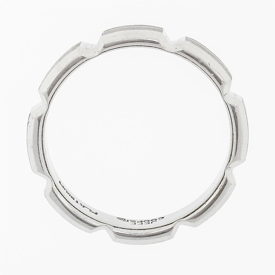 A solid platinum beveled grooved band ring by Jeff Cooper. The ring is size 10, weighs a total of 13.16 grams, and measures 5.70mm wide.
