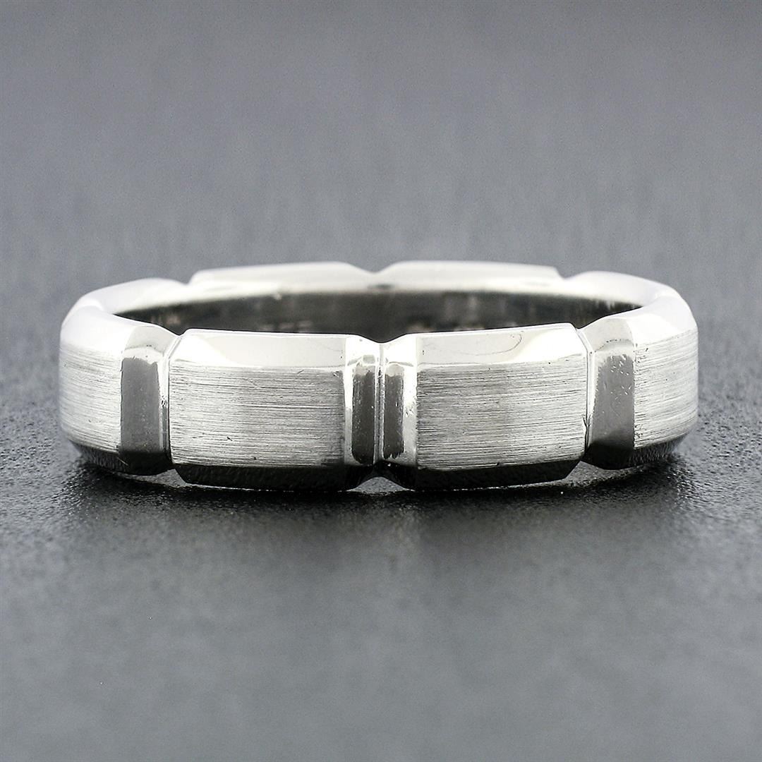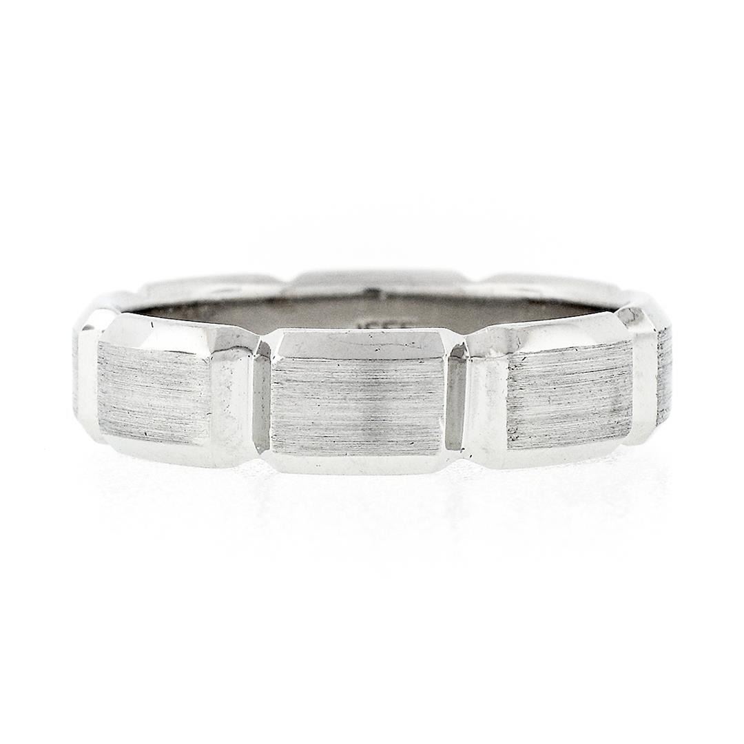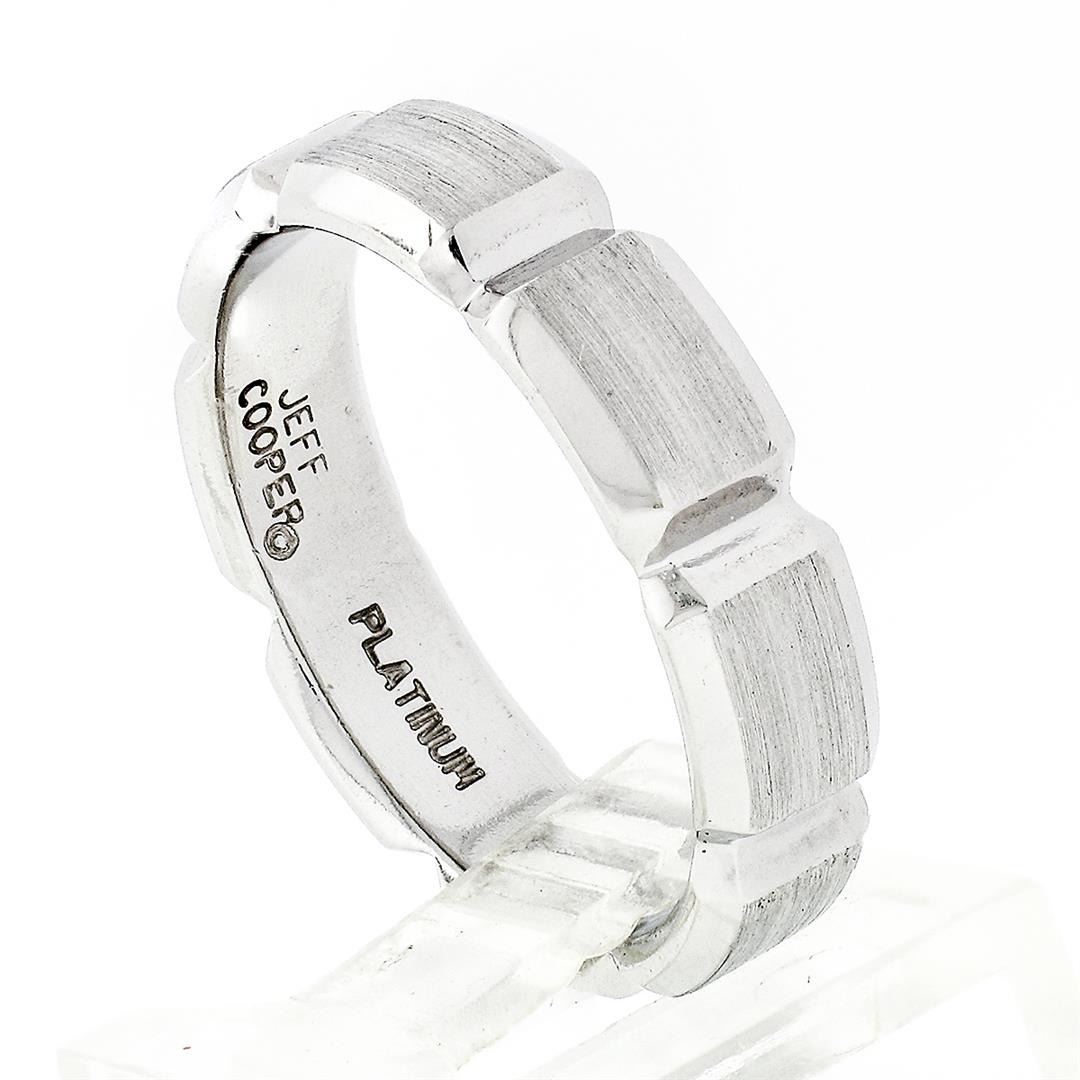A solid platinum beveled grooved band ring by Jeff Cooper. The ring is size 10, weighs a total of 13.16 grams, and measures 5.70mm wide.