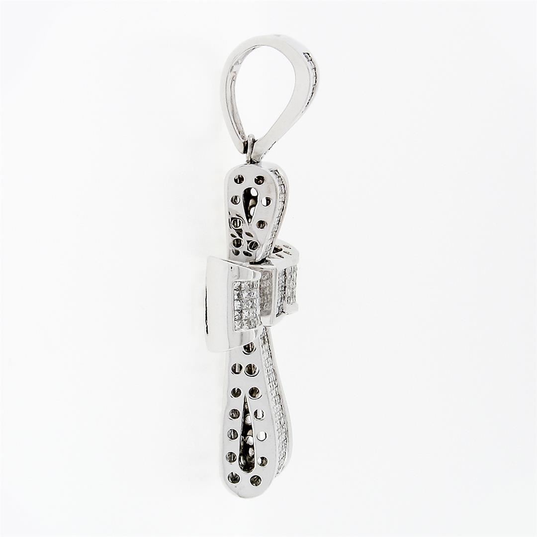 A solid 14k white gold large cross pendant, with 376 princess cut natural diamonds (H/I- VS2/SI2; 11.28ctw). The pendant weighs a total of 55.80 grams, measures 83.3x47.8mm including the bail, and the inside of the bail measures 15.1x11.6mm.