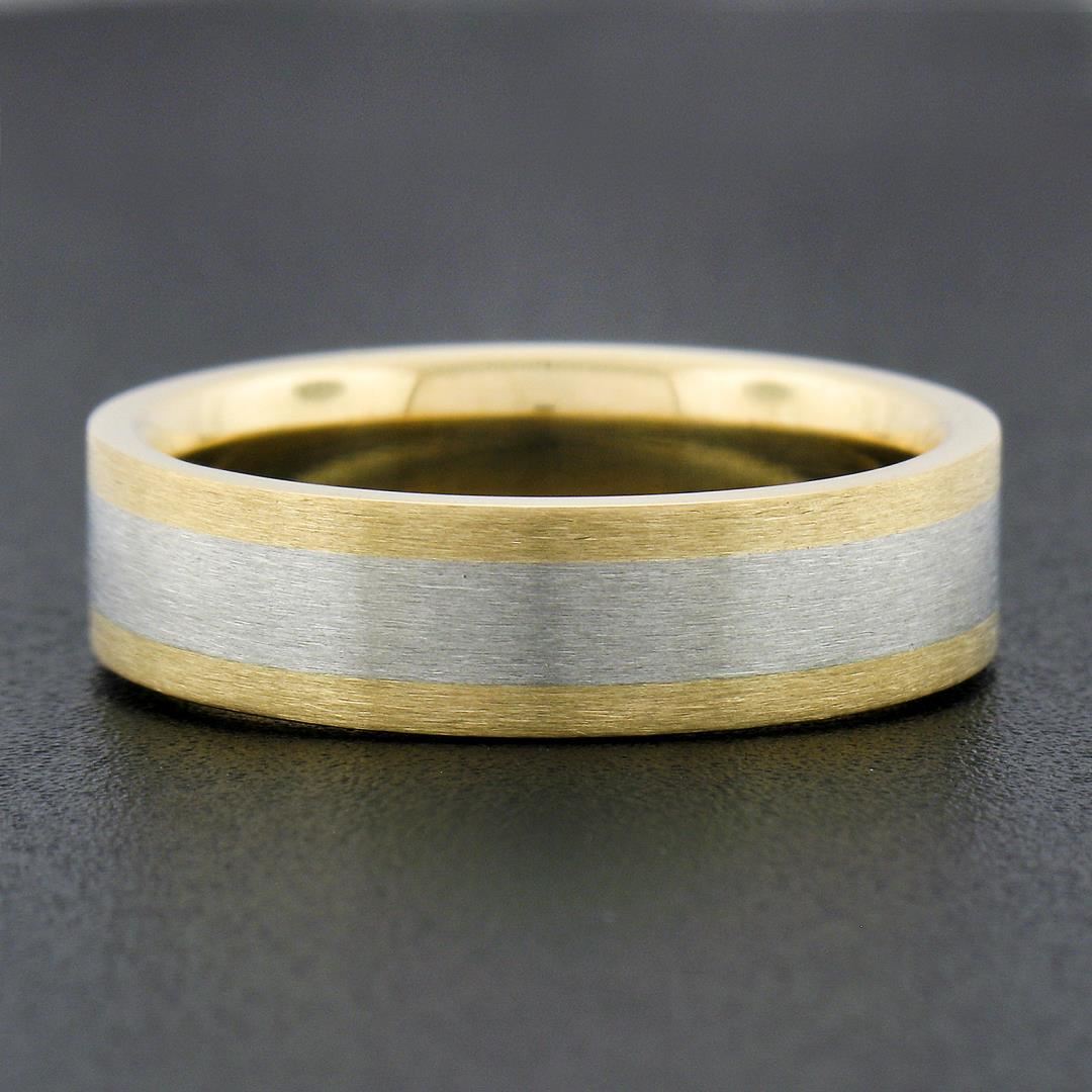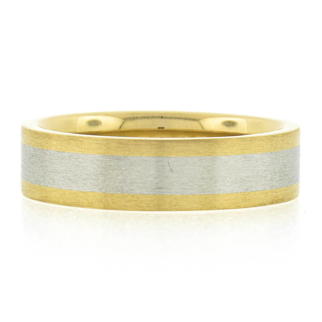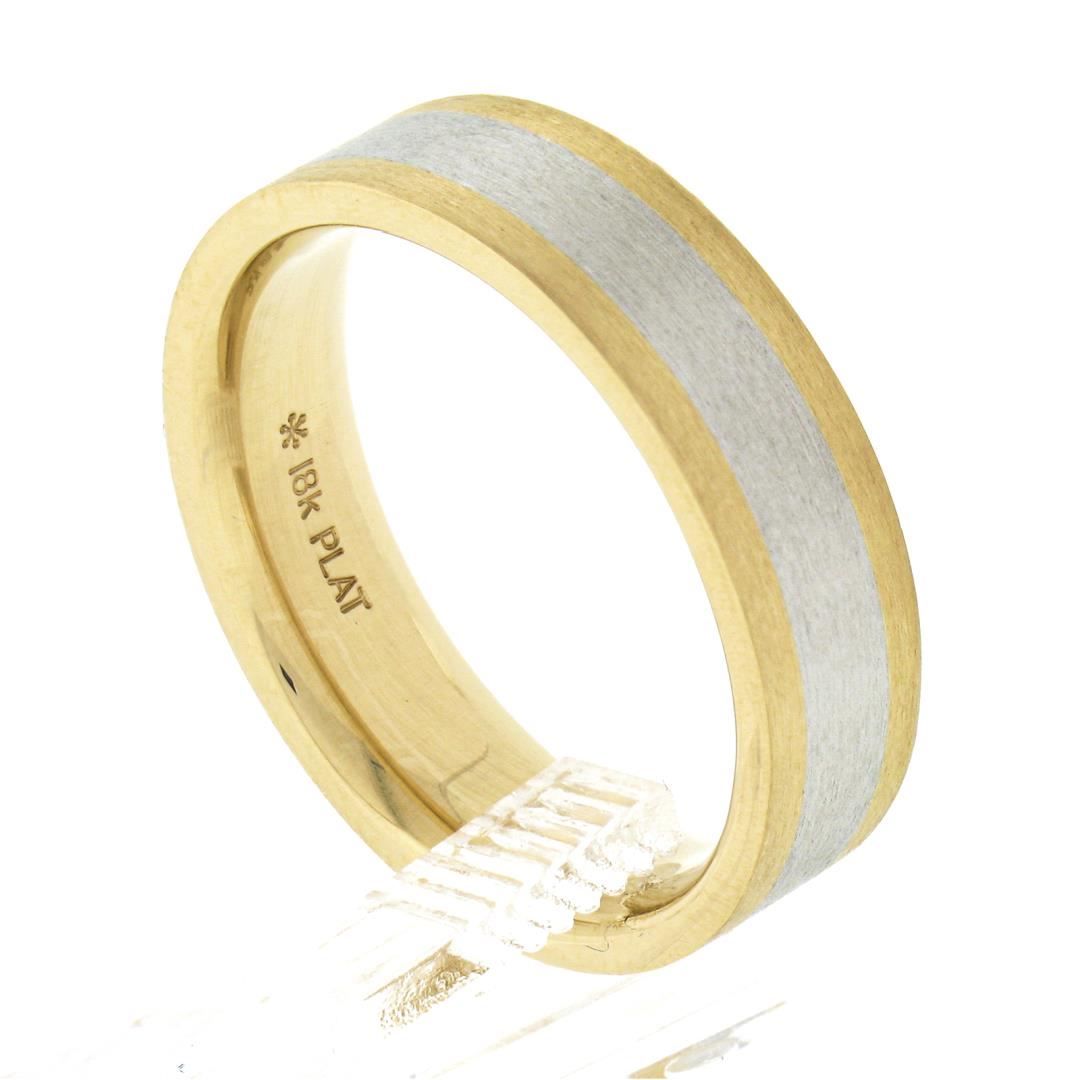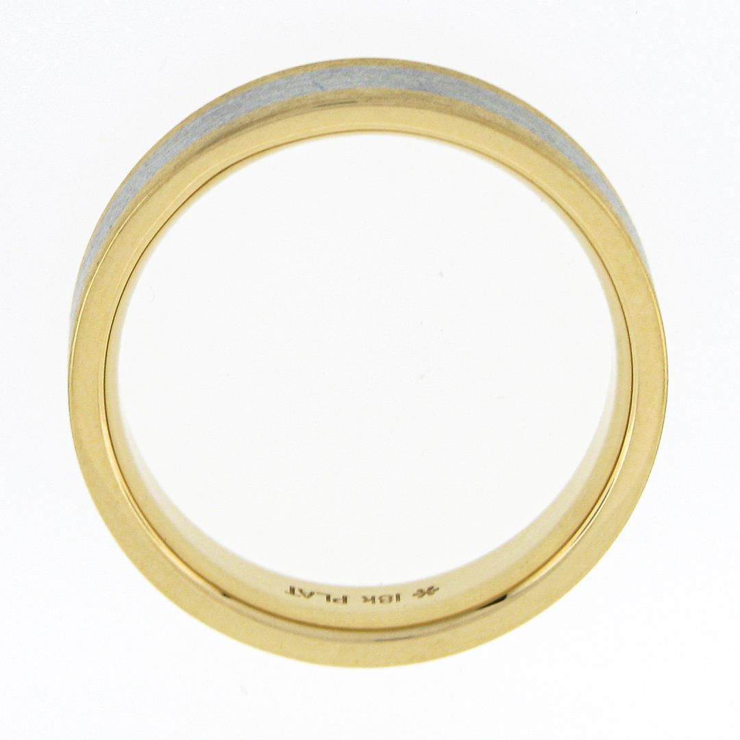 A solid 18k yellow gold & platinum band ring. The ring is size 10, weighs a total of 12.11 grams, and measures 6mm wide.