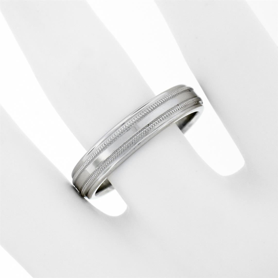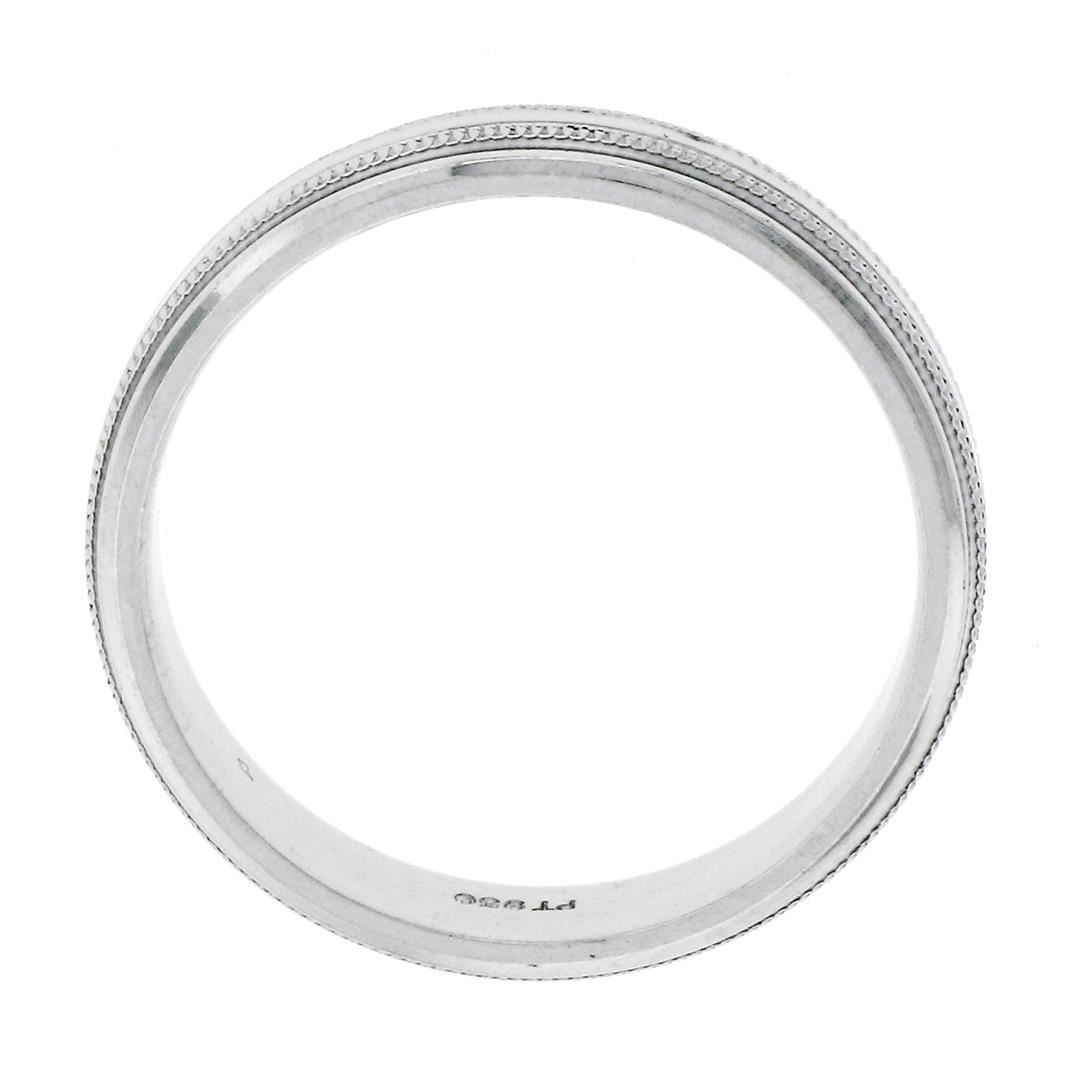An estate solid platinum dual milgrain band ring. The ring is size 11.0, weighs a total of 11.40 grams, and measures 5.0mm wide.